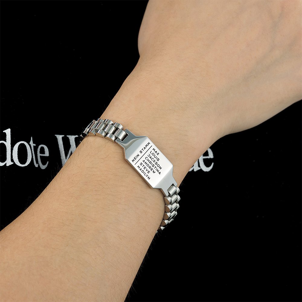Dieses Armband ist aus haltbarem Edelstahl mit viel Liebe zum Detail gefertigt, um Haltbarkeit und Komfort zu gewährleisten. Unser Gravurverfahren stellt sicher, dass die Botschaft tief und deutlich eingraviert wird, sodass der Empfänger sich jahrelang an diese persönliche Botschaft erinnern kann.
