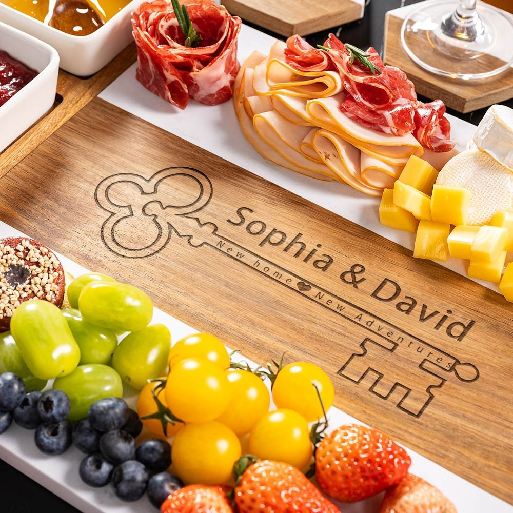 Das Produkt unterstützt die Gravur von Namen, Daten und individuellen Motiven und gibt die Striche von Text und Mustern genau wieder, wobei die Gravur dauerhaft und lichtbeständig bleibt. Die Kombination aus Holz und Marmor schafft einen natürlichen, warmen visuellen Stil, der Raffinesse und Luxus unterstreicht und Küchenutensilien aus der Monotonie in ein persönliches Stück verwandelt, das besondere Erinnerungen mit sich bringt.
