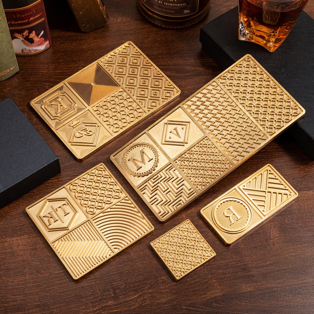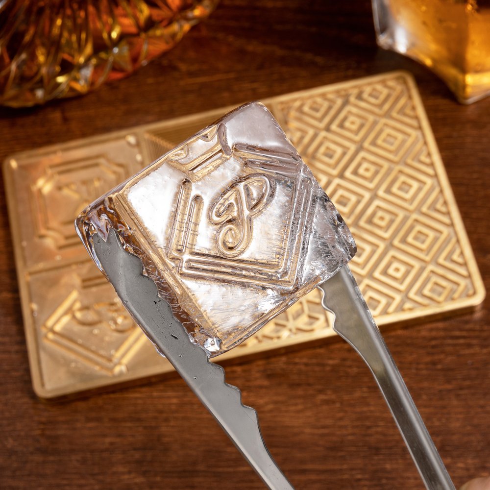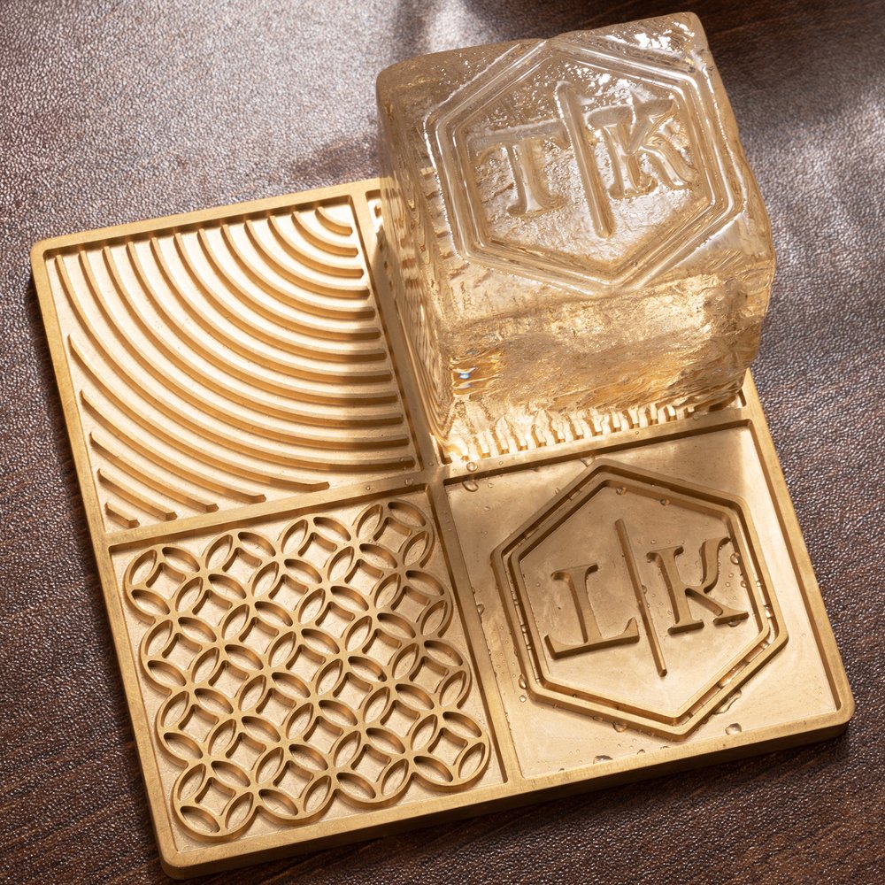 Die Verwendung von lebensmittelechtem Messing gewährleistet, dass die Eiswürfel nicht nur schön, sondern auch sicher zu trinken sind. Die Formkante ist präzise geschnitten, um sicherzustellen, dass das Muster klar geprägt und dreidimensional ist
