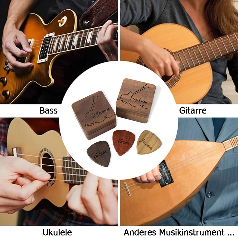 Diese Gitarren-Plektrum-Aufbewahrungsbox und die Plektren werden aus natürlichem Holz gefertigt, um Ihrem Gitarrenspiel eine besondere Klangqualität zu verleihen. Sie können eine einzelne Box oder eine Box mit 1-3 Plektren individuell gestalten und die Plektren sowie die Box mit Ihrem Wunschtext oder Symbol personalisieren.