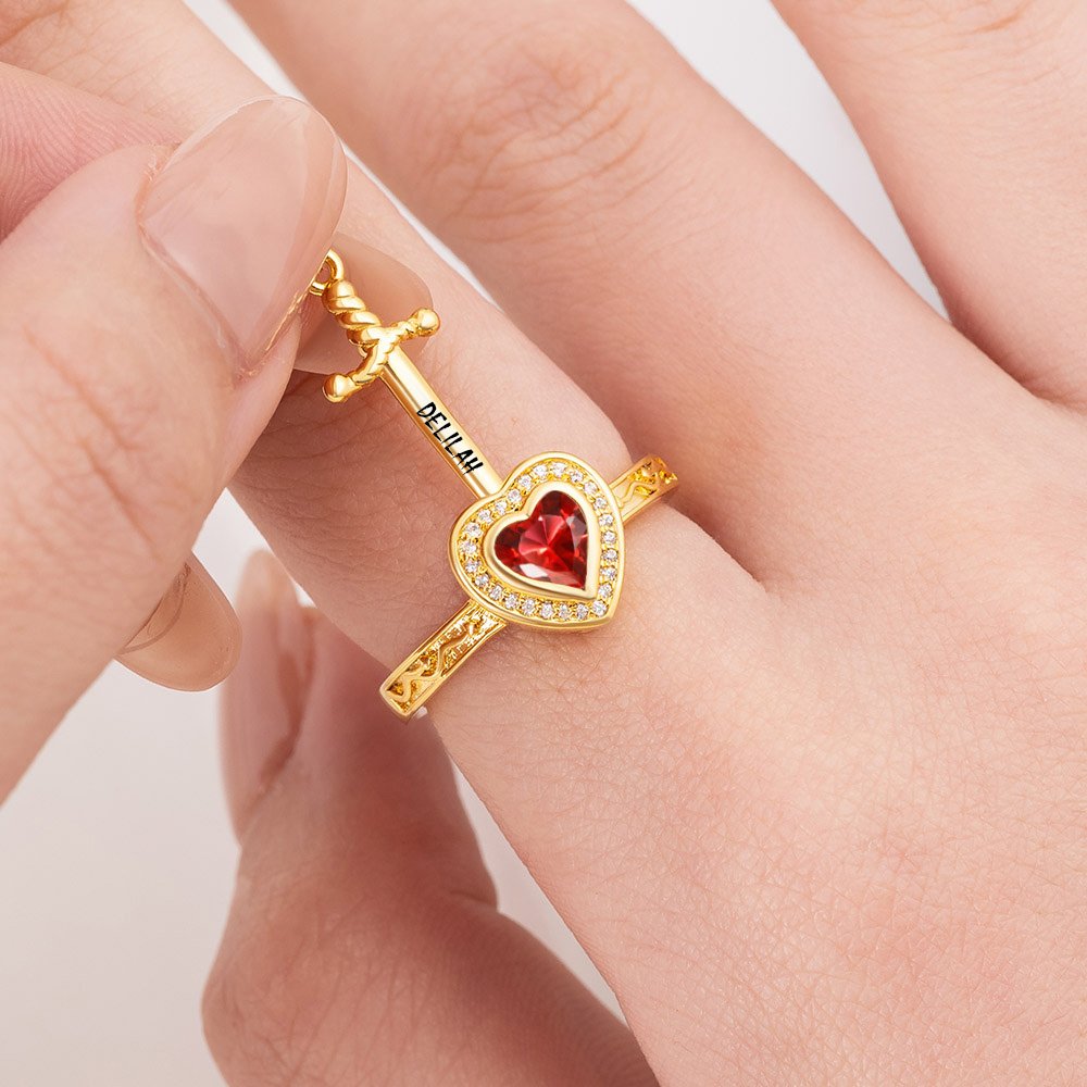 Dieses Herz-Schwert-Schmuckset ist die perfekte Kombination aus Romantik und Stärke, geschaffen für Sie, die Einzigartigkeit und Individualität suchen. Das Set besteht aus einem schönen herzförmigen Ring und einem schwertförmigen Armband. Jedes Stück enthält eine tiefe Bedeutung. Sie können nicht nur Ihren Namen angeben, sondern auch einen Geburtsstein wählen, um es noch einzigartiger zu machen.