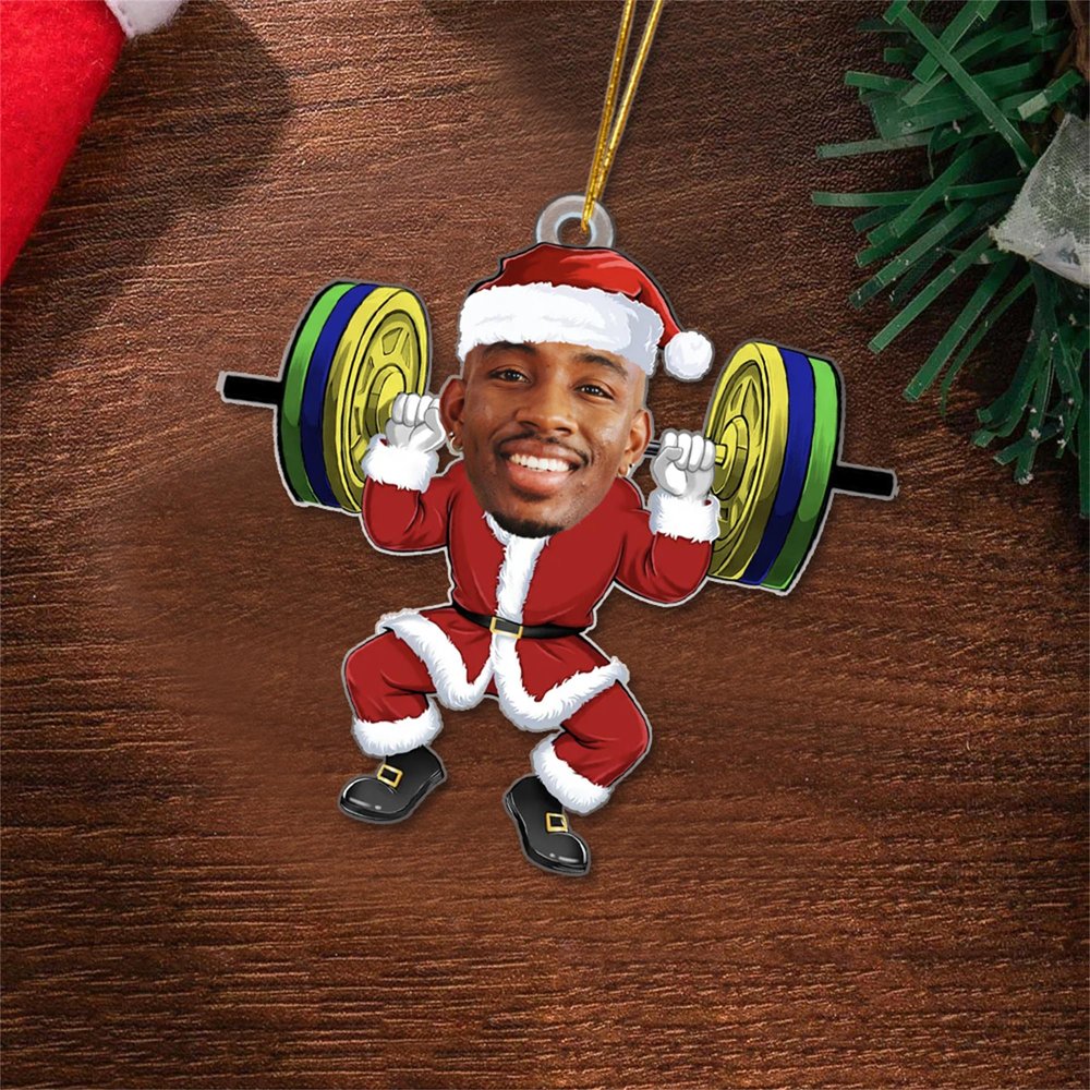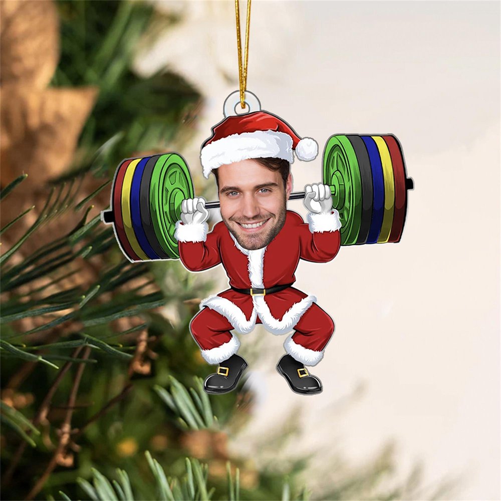 Dieses Ornament kombiniert auf clevere Weise das traditionelle Bild des Weihnachtsmanns mit der modernen Fitnesskultur und verbindet so perfekt die Freude des Weihnachtsmanns mit der Stärke der Sportler. Es unterstützt insbesondere das Hochladen von Gesichtsfotos zur Anpassung und die Auswahl von 1-5 Hantelscheibenfarben (sortiert von innen nach außen), so dass Ihre Freunde, Liebhaber oder Fitnesspartner sofort zu "Gewichtheber-Weihnachtsmännern" werden können, und Sie können nicht anders, als jedes Mal zu lächeln, wenn Sie es sehen.