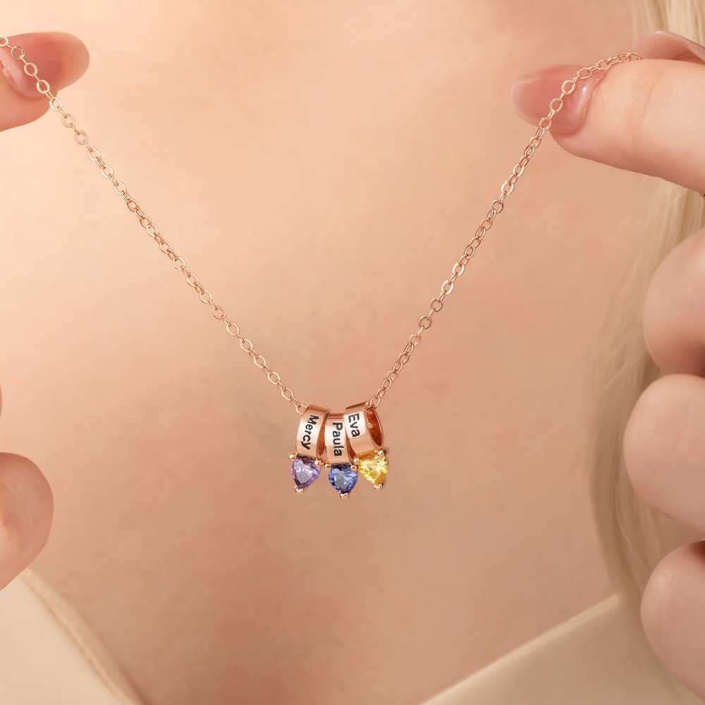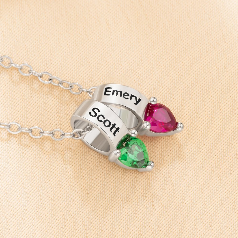 Diese personalisierte Geburtsstein-Halskette besteht aus 1-5 Ringen mit Namen, die jeweils mit einem entsprechenden Geburtsstein verziert sind. So können Sie ein einzigartiges Familienerinnerungsstück schaffen, das wirklich etwas Besonderes ist.