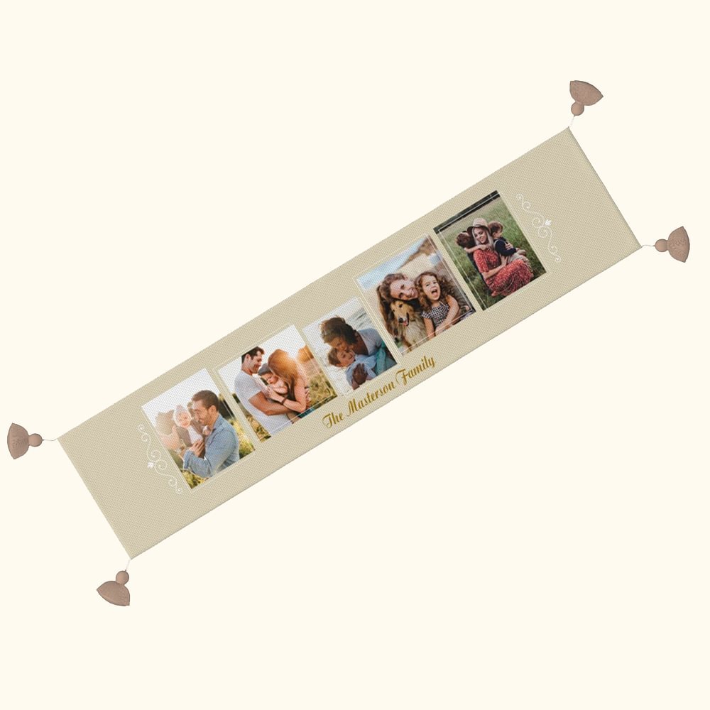 Das Besondere an dieser Tischdecke ist, dass Sie Ihre 5 Lieblings-Familienfotos auswählen können, damit sie wirklich Sie und Ihre Familie repräsentieren, was sie zu einem einzigartigen Andenken für Sie und Ihre Familie macht.