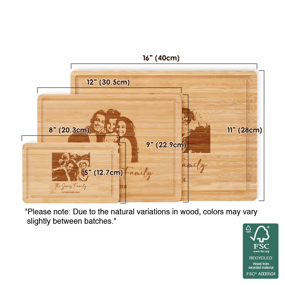 Dieses Schneidebrett kann mit dem Namen der Familie, dem Jahr und dem Familienfoto individuell gestaltet werden und hält so die schönsten Momente fest. Die präzise Gravur verleiht dem Design einen eleganten Touch und unterstreicht die Raffinesse des Designs.