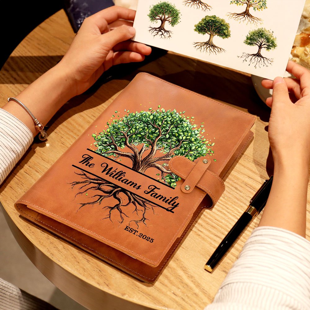 Dieses Notizbuchcover ist mit dem "Baum des Lebens" als Kern gestaltet. Das Muster des Lebensbaums ist naturgetreu, mit üppigen Zweigen und Blättern und festen Wurzeln, die den Wohlstand des Lebens und das Erbe der Weisheit symbolisieren. Darüber hinaus kann der Text auf dem Einband des Notizbuchs individuell gestaltet werden, was es zu einem Kunstwerk mit persönlicher und familiärer Bedeutung macht.