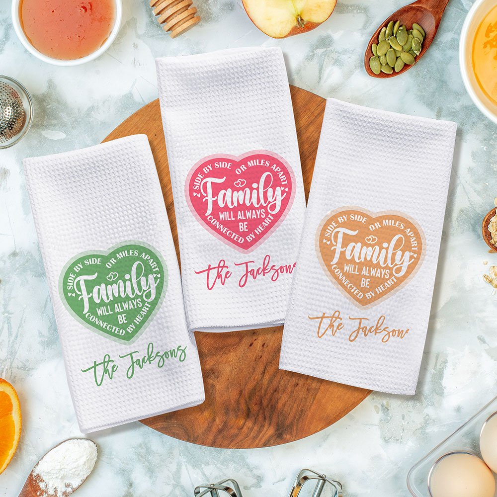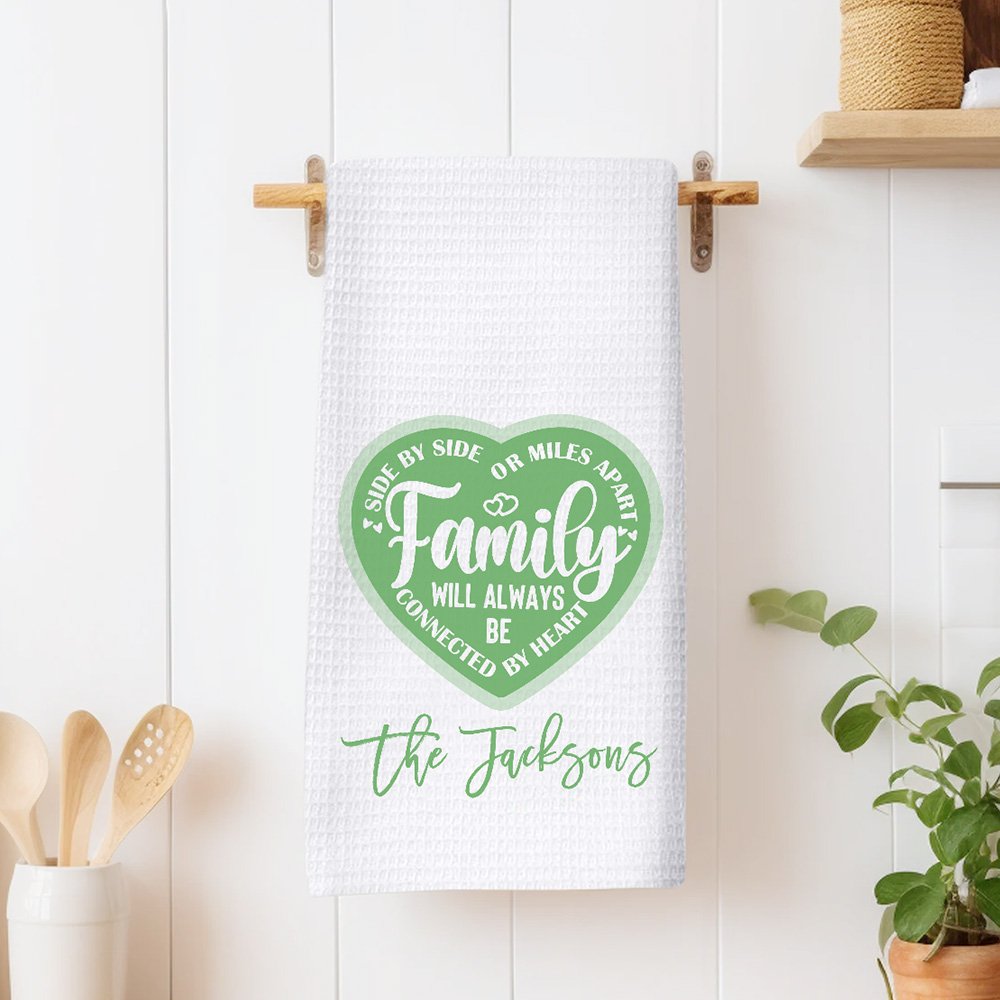 Dieses Küchentuch besteht aus 100 % Baumwolle und ist nicht nur weich und saugfähig, sondern auch sehr langlebig. Es ist so konzipiert, dass es dem täglichen Gebrauch und häufigem Waschen standhält, damit es über Jahre hinweg ein geschätztes Küchenaccessoire bleibt. (VIELSEITIGES KÜCHENUTENSIL): Mit seiner großzügigen Größe und der praktischen Waffelstruktur ist dieses Handtuch perfekt für eine Vielzahl von Aufgaben in der Küche geeignet. Vom Abtrocknen des Geschirrs bis hin zum Abwischen der Arbeitsflächen verbindet es mühelos Funktionalität mit Herzenswärme. (HERZERWÄRMENDES GESCHENK): Ganz gleich, ob Sie ein Geschenk für eine engagierte Hausfrau oder ein frisch verheiratetes Paar suchen, das sein Leben gemeinsam beginnt, dieses personalisierte Küchentuch ist eine herzliche Wahl. Es symbolisiert die Bedeutung der Familie und die Liebe, die sie verbindet, und ist damit ein durchdachtes und sentimentales Geschenk, das der Beschenkte in Ehren halten wird.