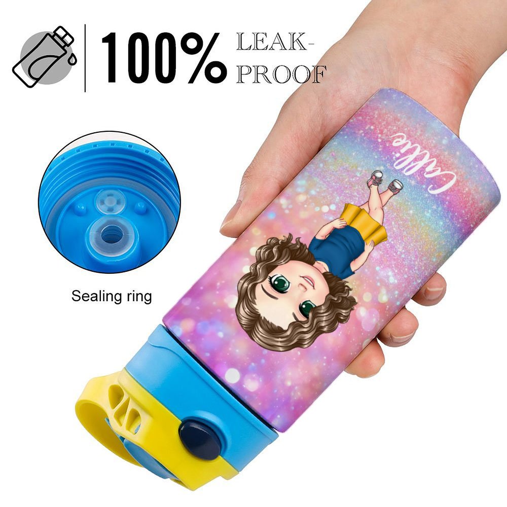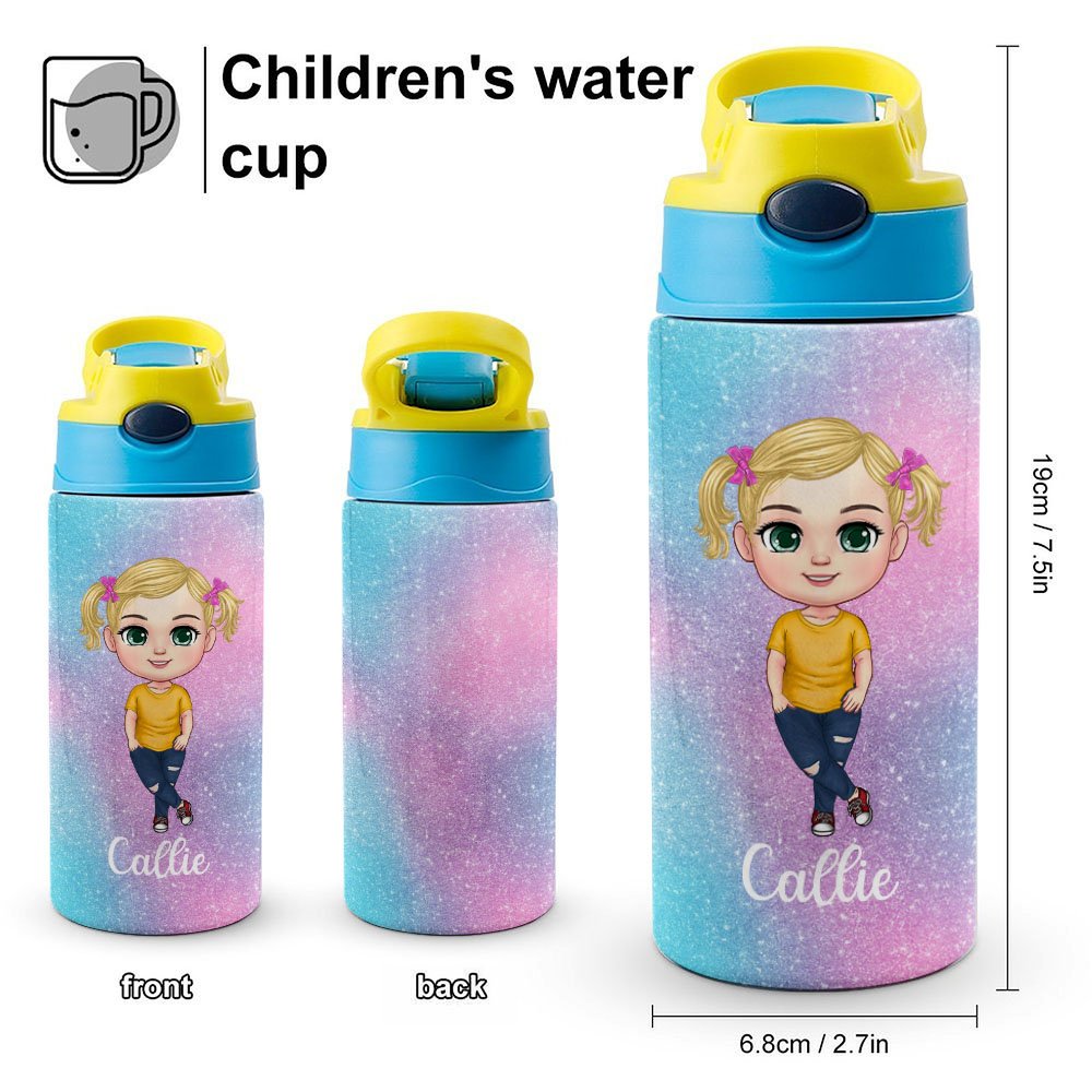 Diese isolierte 12-Unzen-Wasserflasche ist mit niedlichen Cartoon-Figuren und einem persönlichen Namen versehen, was sie zu einem lustigen und einzigartigen Accessoire für Kinder macht. Die verträumten und leuchtenden Farben und niedlichen Cartoon-Motive sind perfekt, um die Fantasie von Jungen und Mädchen zu beflügeln.