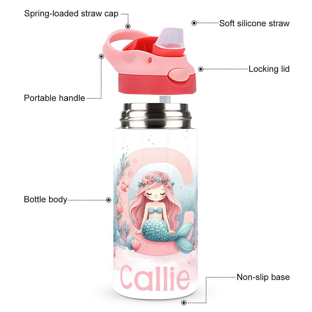 Diese Wasserflasche mit Meerjungfrauenmotiv integriert die verträumten Elemente der Meereswelt perfekt in ihr Design. Die Flasche ist mit verspielten Meerjungfrauenmustern verziert, wobei 26 Muster zur Auswahl stehen. Die sanften Farben und die kindliche Ausstrahlung machen sie besonders geeignet für kleine Mädchen, die den Ozean und Meerjungfrauen lieben. Du kannst deine Initialen und deinen Namen wählen, um diese Wasserflasche zu einem einzigartigen Trinkgeschirr für dein Kind zu machen.