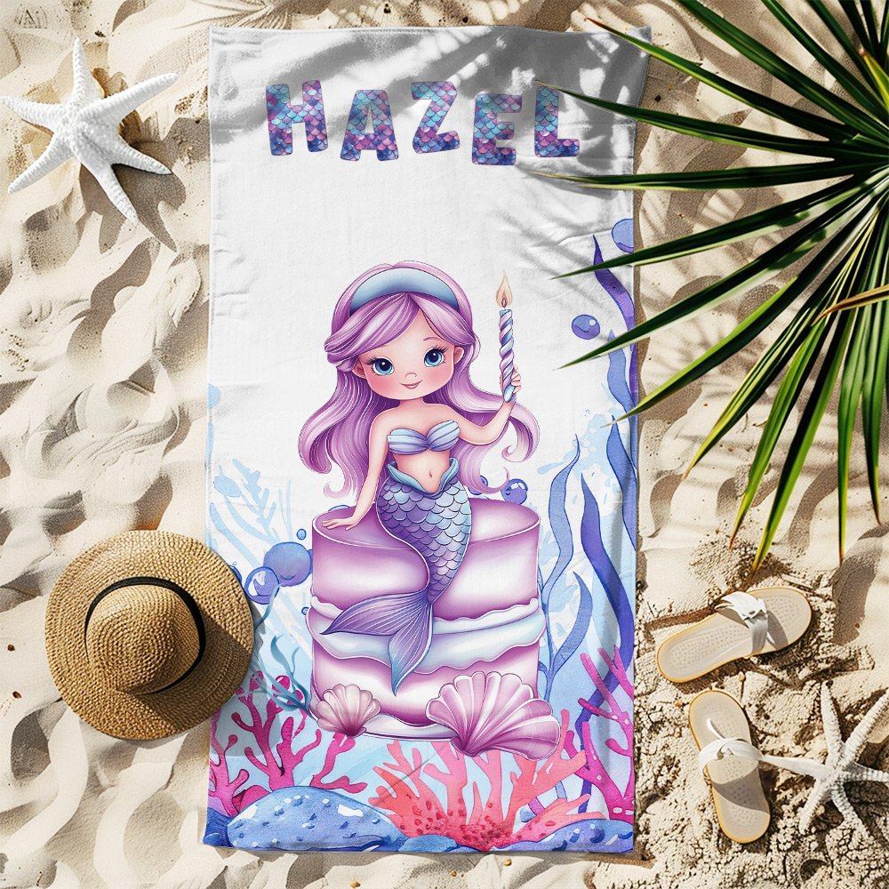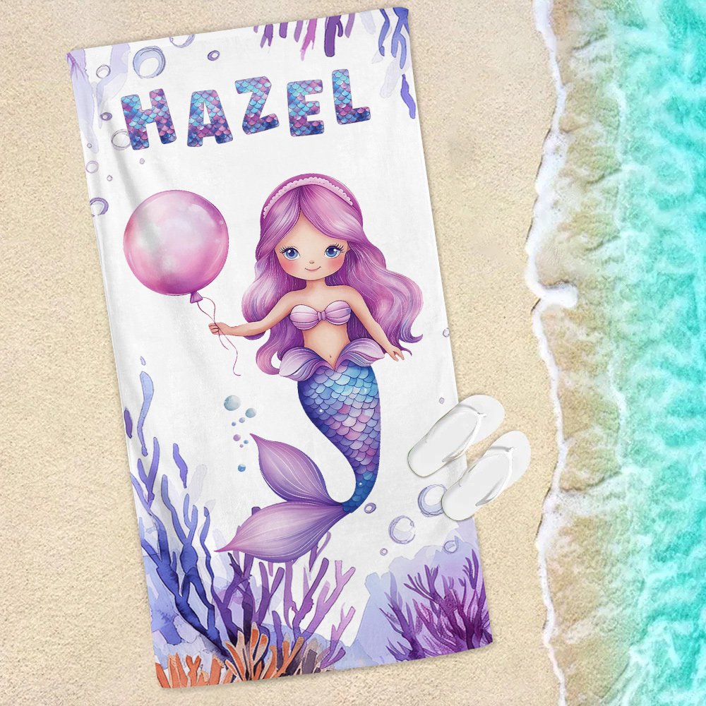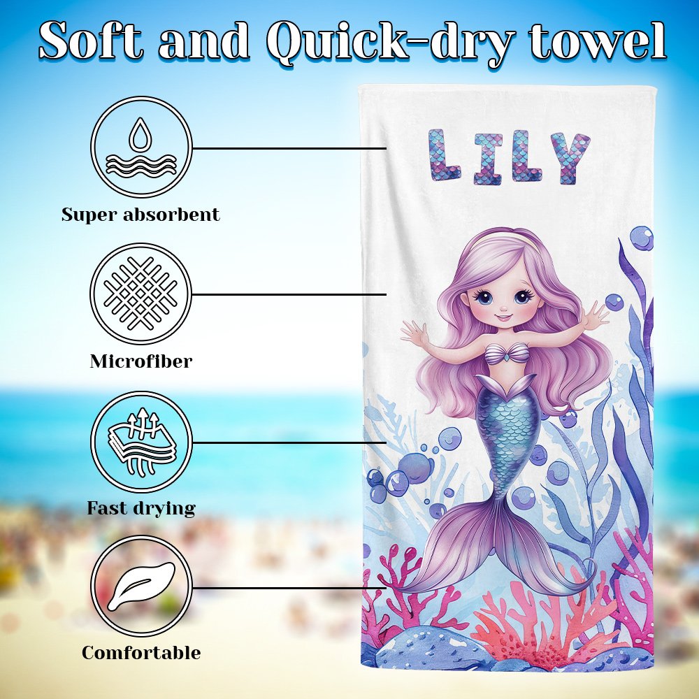 Personalisierte Fantasy Meerjungfrau schnell trocknend überdimensioniert Mikrofaser Strandtuch mit Namen Urlaub Strand Reisen Zubehör Geburtstag Geschenk für Mädchen Kinder
