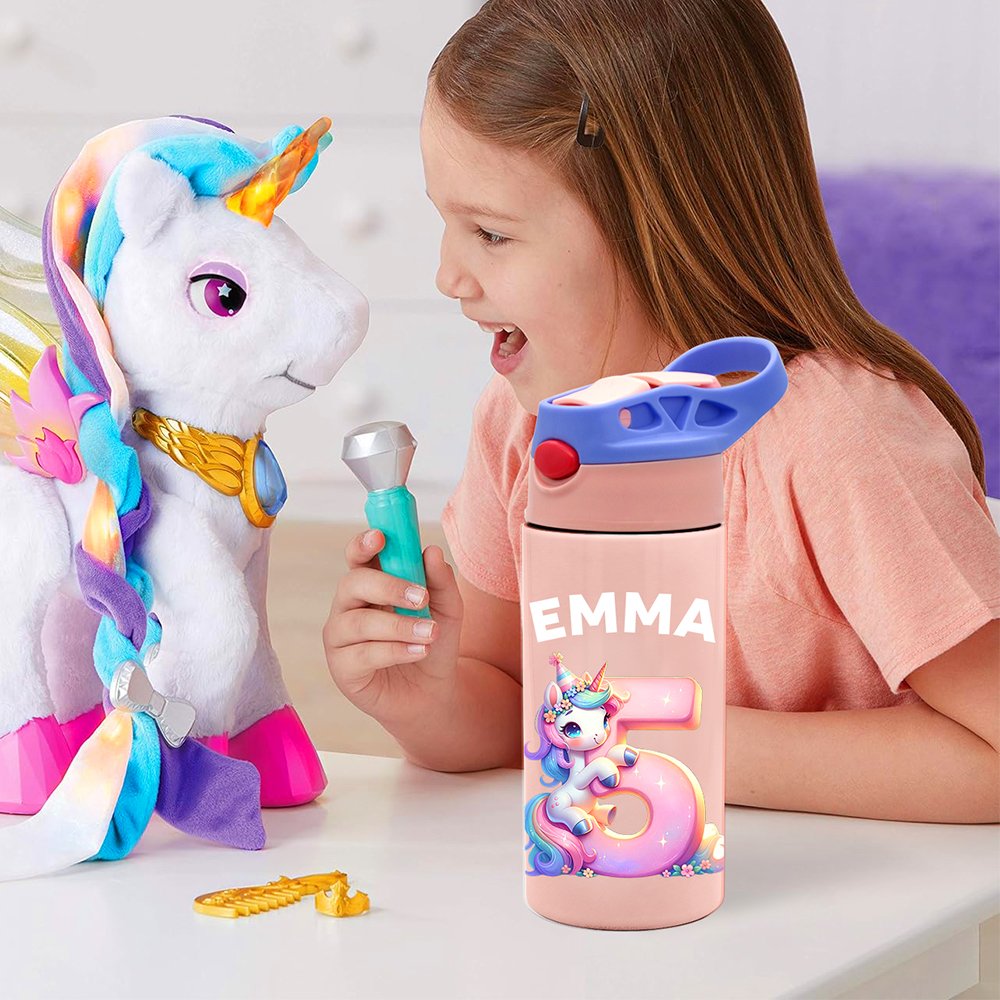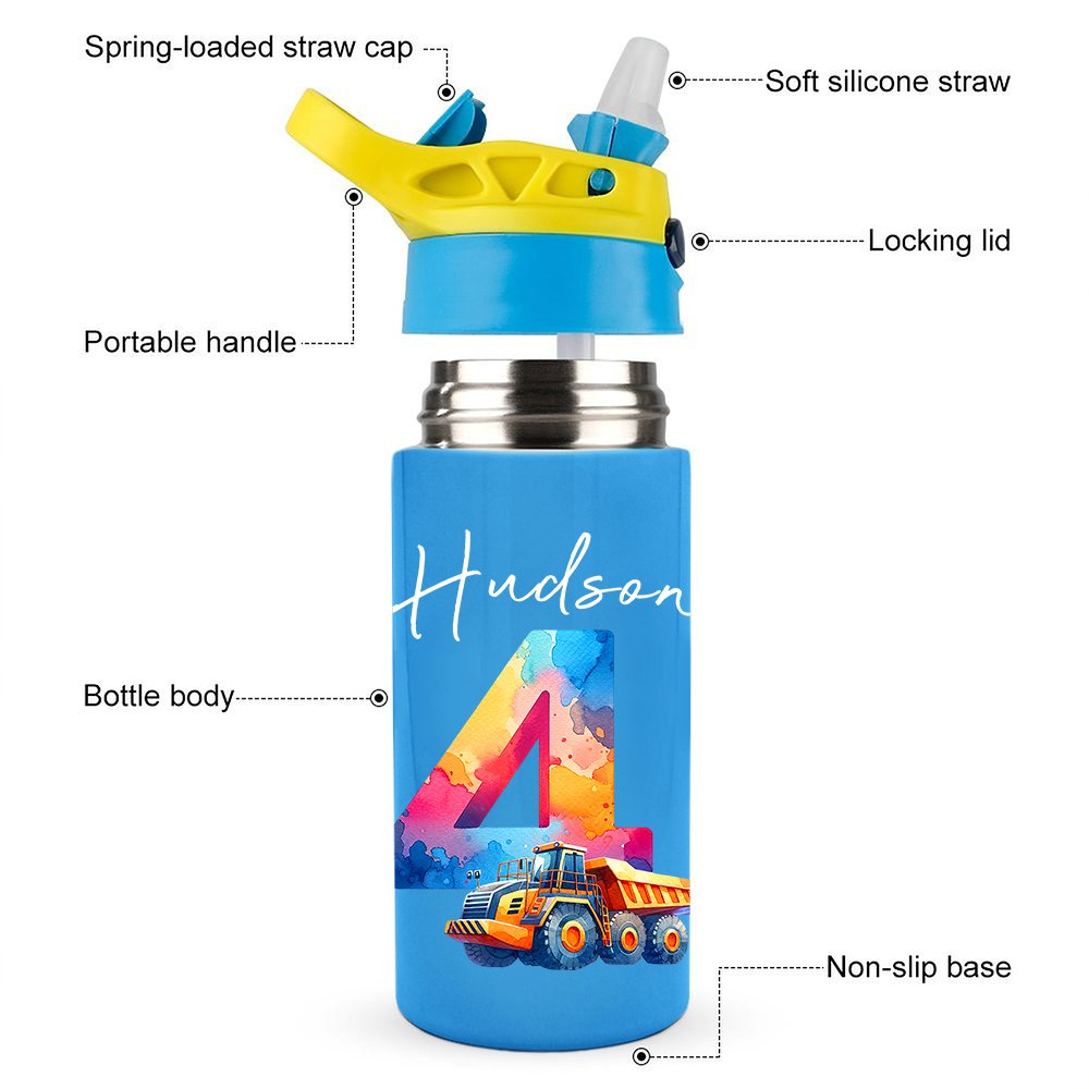 Feiern Sie die besonderen Momente Ihres Kindes mit dieser isolierten 12-oz-Wasserflasche, die einen anpassbaren Namen und lebhafte Cartoon-Motive wie Einhörner, Dinosaurier und Baufahrzeuge enthält. Sie ist das perfekte Geschenk für Geburtstage, den Kindertag oder Überraschungen zum Schulanfang und bietet einen fröhlichen und einzigartigen Touch, der genau auf das Kind zugeschnitten ist.