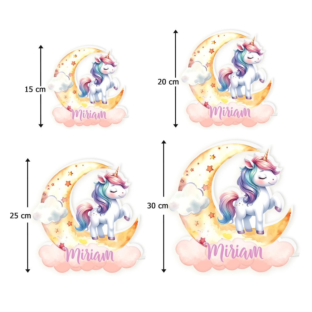 Die sanften Farben in Kombination mit dem verträumten Einhorn-Motiv und der personalisierten Namen sprechen die kindliche Fantasie besonders an. Sie vermitteln Mut und Reinheit und schaffen eine zauberhafte, märchenhafte Atmosphäre im Kinderzimmer.