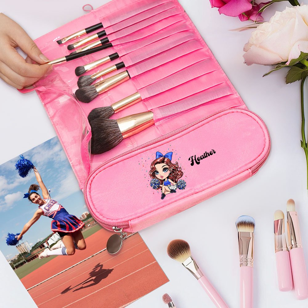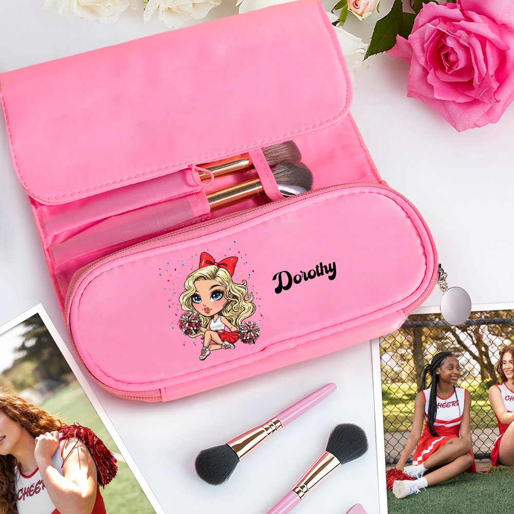 Diese Make-up-Pinseltasche ist mit Cheerleader-Mädchen entworfen, mit hellen großen Wellen von Haaren und jubelnden Outfits, schön und charmant, zeigt die Energie und Begeisterung der Mädchen. Sie können Ihren Namen hinzufügen, um es von einem einfachen Accessoire zu einem wertvollen Souvenir zu verbessern.
