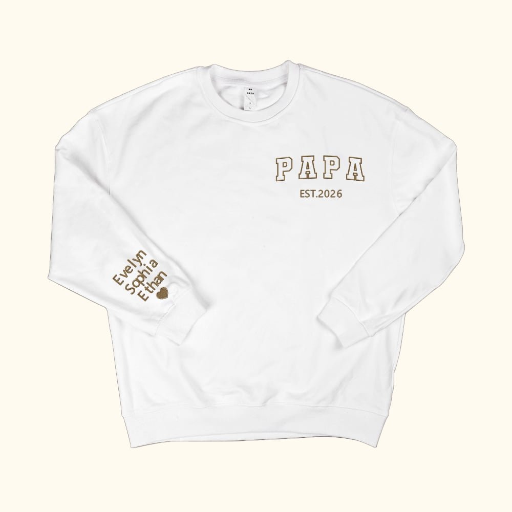Diese Kleidungsstücke sind mit einem aufgestickten Herz auf dem Ärmel versehen. Fügen Sie das Jahr ein, in dem der Empfänger Vater oder Großelternteil wurde, sowie die Namen von bis zu 5 Kindern. So entsteht ein wirklich einzigartiges Geschenk, das die besondere Familienbande feiert und die tiefe Liebe und Verbindung zwischen dem Empfänger und seinen Kindern oder Enkeln symbolisiert.