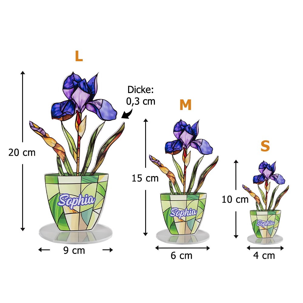Diese Acryltafel ist von der Geburtsblume des jeweiligen Monats inspiriert. Jede Blume symbolisiert eine einzigartige Persönlichkeit und ein Bestreben, wie die Nelken im Januar, die für Zärtlichkeit und Widerstandsfähigkeit stehen, und die Maiglöckchen im Mai, die Reinheit und Hoffnung symbolisieren. In Kombination mit verschiedenen Topfdesigns fängt es die Vitalität und Energie eines Frühlingsgartens ein. Mit einem Namen versehen, kann jede Person ihre eigene Blumensprache und ihren eigenen Segen erhalten.