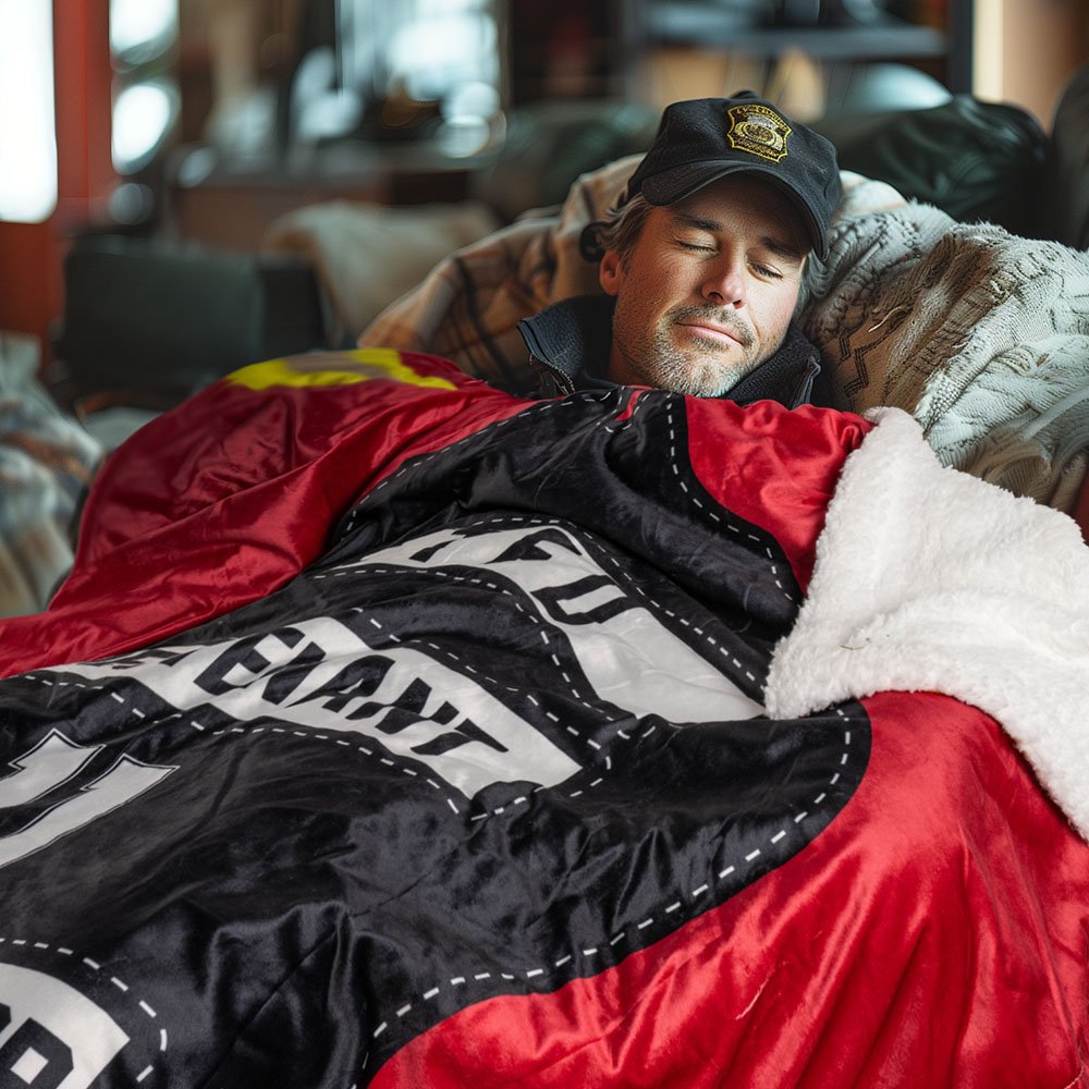 Unsere Decken sind aus hochwertigem Fleece- oder Sherpa-Stoff gefertigt, der sich extrem weich anfühlt und Ihnen ultimative Wärme und Komfort bietet. Zweitens ist diese Decke in verschiedenen Größen erhältlich. Ob Sie sich also für ein gemütliches Nickerchen einrollen oder in Ihrem Feuerwehrquartier verwenden, diese Decke wird Ihnen das perfekte Erlebnis bieten.
