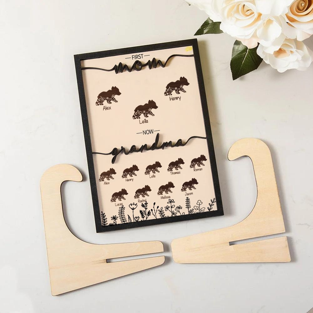 Dieses Holzschild kann mit den Namen von 1 bis 6 Kindern und 1 bis 12 Enkelkindern individuell gestaltet werden, um jedes Familienmitglied zu repräsentieren. Das Design impliziert, dass die Familie immer zusammen, vereint und liebevoll sein wird. Ein einzigartiges und von Herzen kommendes Geschenk, das die Liebe und Verbundenheit einer Mutter mit ihren Kindern feiert.