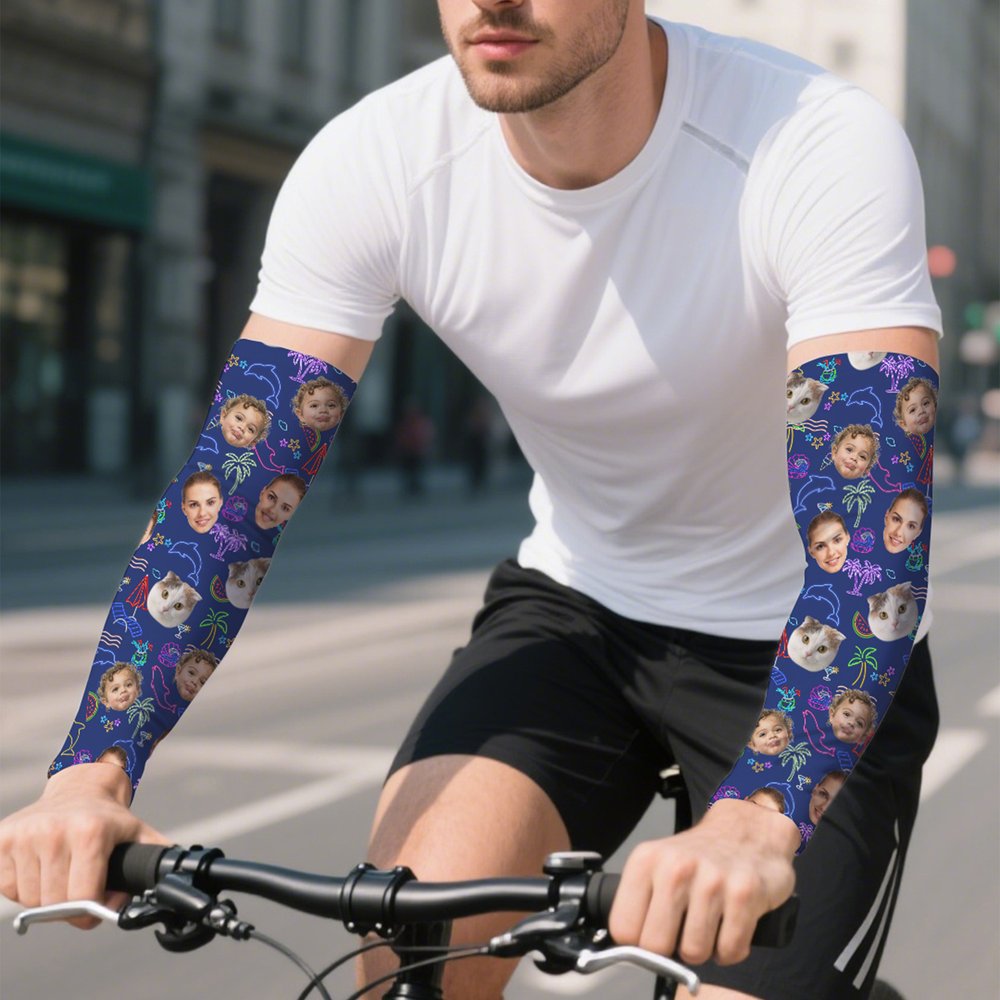 Diese Armstulpen kombinieren auf geschickte Weise tropische Elemente wie Flamingos, Delfine und Kokospalmen. Es stehen drei Muster zur Auswahl, die einen starken Strandurlaubsstil präsentieren. Das Besondere daran ist, dass 1 bis 3 Gesichtsfotos zur individuellen Gestaltung hochgeladen werden können. Egal, ob es sich um die lächelnden Gesichter von Familie, Freunden oder Haustieren handelt, sie können auf der Hülle interessant präsentiert werden. Es ist einzigartig, interessant und unvergesslich.