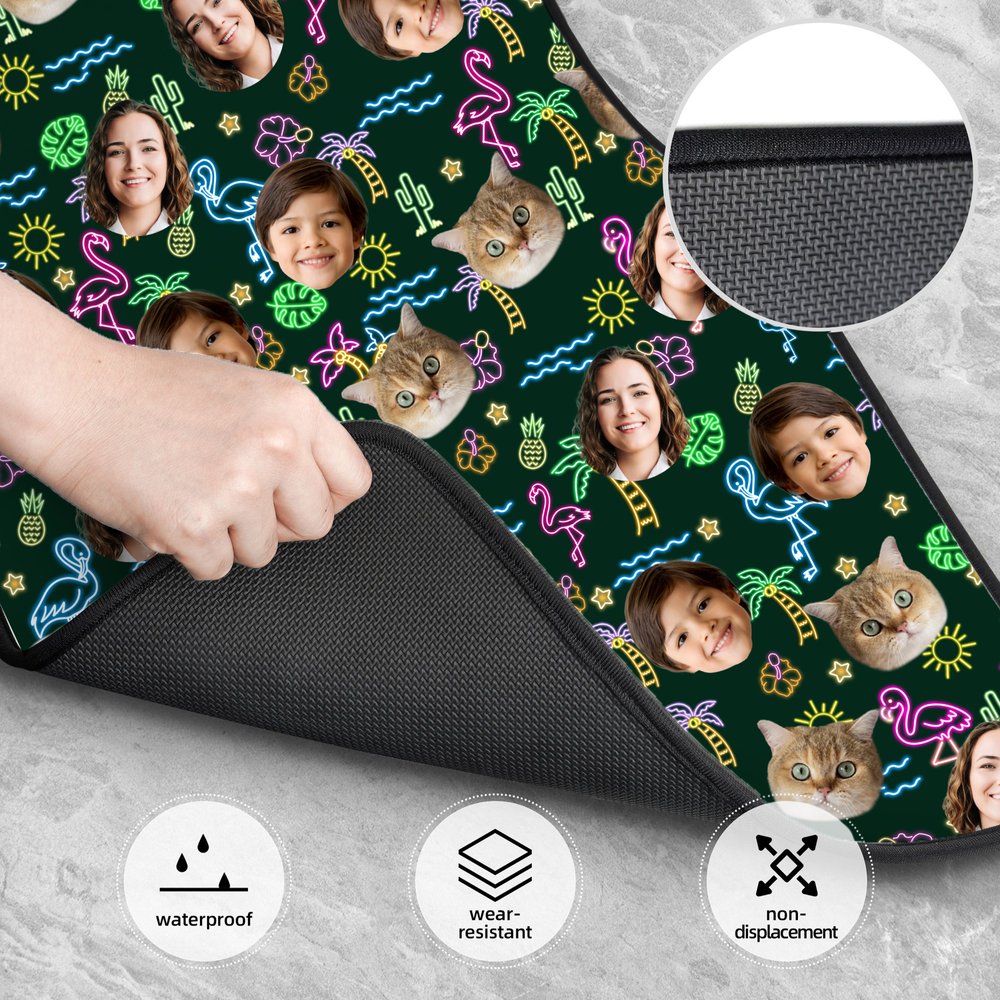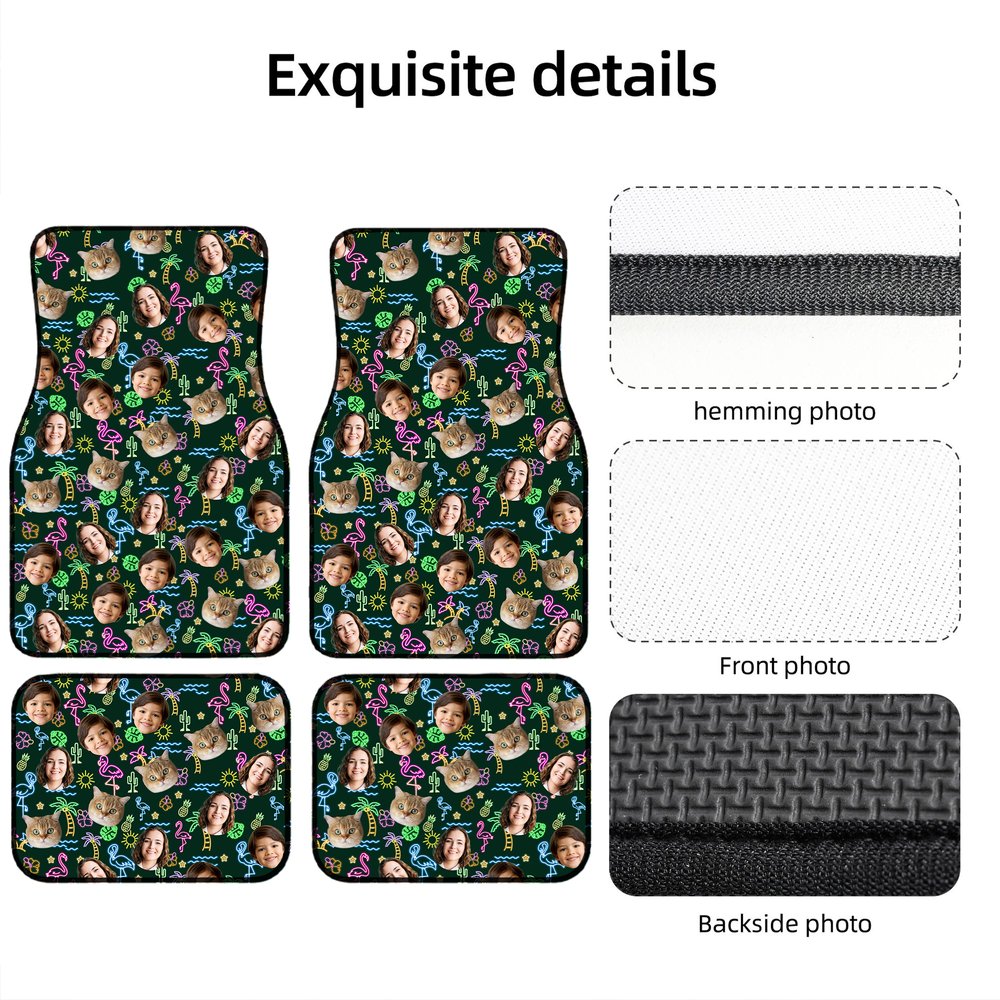 Personalisierte Flamingo Delphin Palme Anti-Rutsch Auto Fußmatte Satz von 4 Stück mit 1-3 Gesicht Fotos Geburtstagsgeschenk für Tierliebhaber Autobesitzer