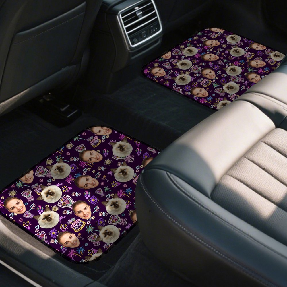 Das vierteilige Autoteppich-Set kombiniert individuelle Gestaltung mit künstlerischer Ästhetik und schafft einen einzigartigen Stil mit mehreren Elementen. Es bietet 3 einzigartige Muster und 12 Hintergrundfarben zur Auswahl, unterstützt die Anpassung von 1-3 Foto-Avataren und kann niedliche Muster wie Flamingos und Delfine geschickt mit persönlichen Bildern kombinieren.