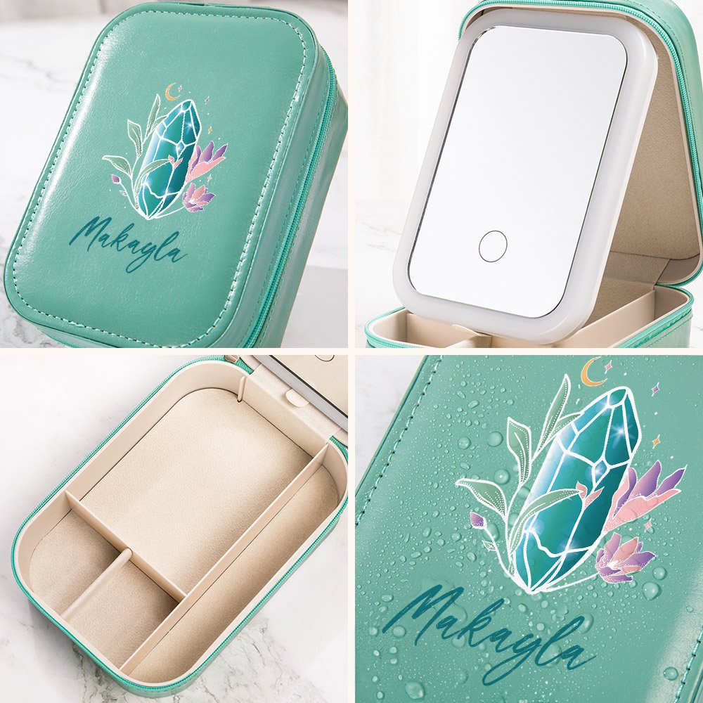 Dieses Schmuckkästchen enthält einen LED-Spiegel mit drei einstellbaren Farbeinstellungen: warmes Licht, natürliches Licht und kühles Licht, mit denen sich verschiedene Stimmungen erzeugen lassen. Er wird mit einem Ladekabel geliefert, das mit einer einzigen Ladung etwa eine Woche lang verwendet werden kann. Ganz gleich, ob Sie sich für einen Abend oder einen lockeren Tag vorbereiten, wählen Sie das Licht, das Ihren Bedürfnissen am besten entspricht. Dieser praktische Spiegel eignet sich perfekt zum Auftragen von Make-up und zum Überprüfen Ihres Aussehens.