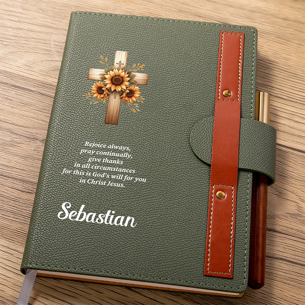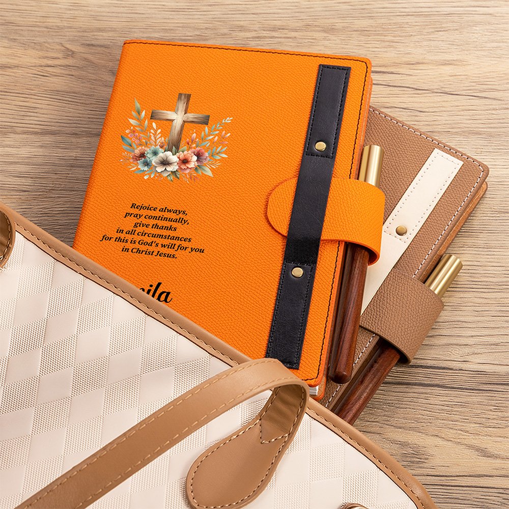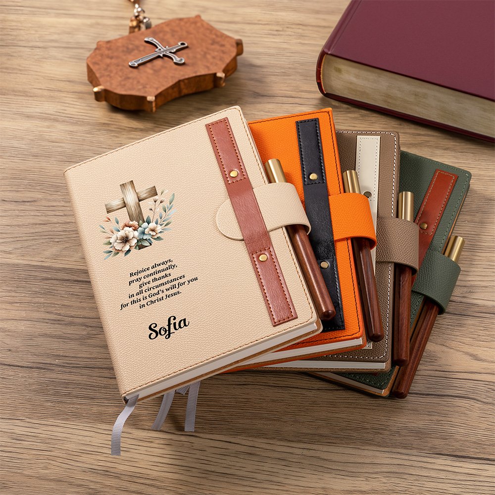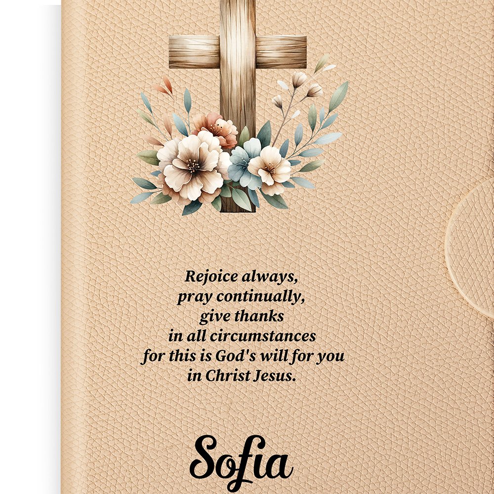 Erhöhen Sie Ihren spirituellen Weg mit unserem Gebetsnotizbuch! Dieses wunderschön gestaltete Notizbuch zeigt eine Reihe von farbenfrohen Blumenkreuzen, aus denen Sie bis zu 25 Muster auswählen können, die jeweils für Glauben und Inspiration stehen. Mit einem klassischen Bibelzitat in der Mitte des Einbands ist es der perfekte Begleiter für Ihren Gottesdienst, Ihr Bibelstudium oder Ihre persönliche Reflexion. Sie können es auch mit Ihrem Namen personalisieren und es so zu einem einzigartigen Andenken machen, das Ihren Glauben widerspiegelt.