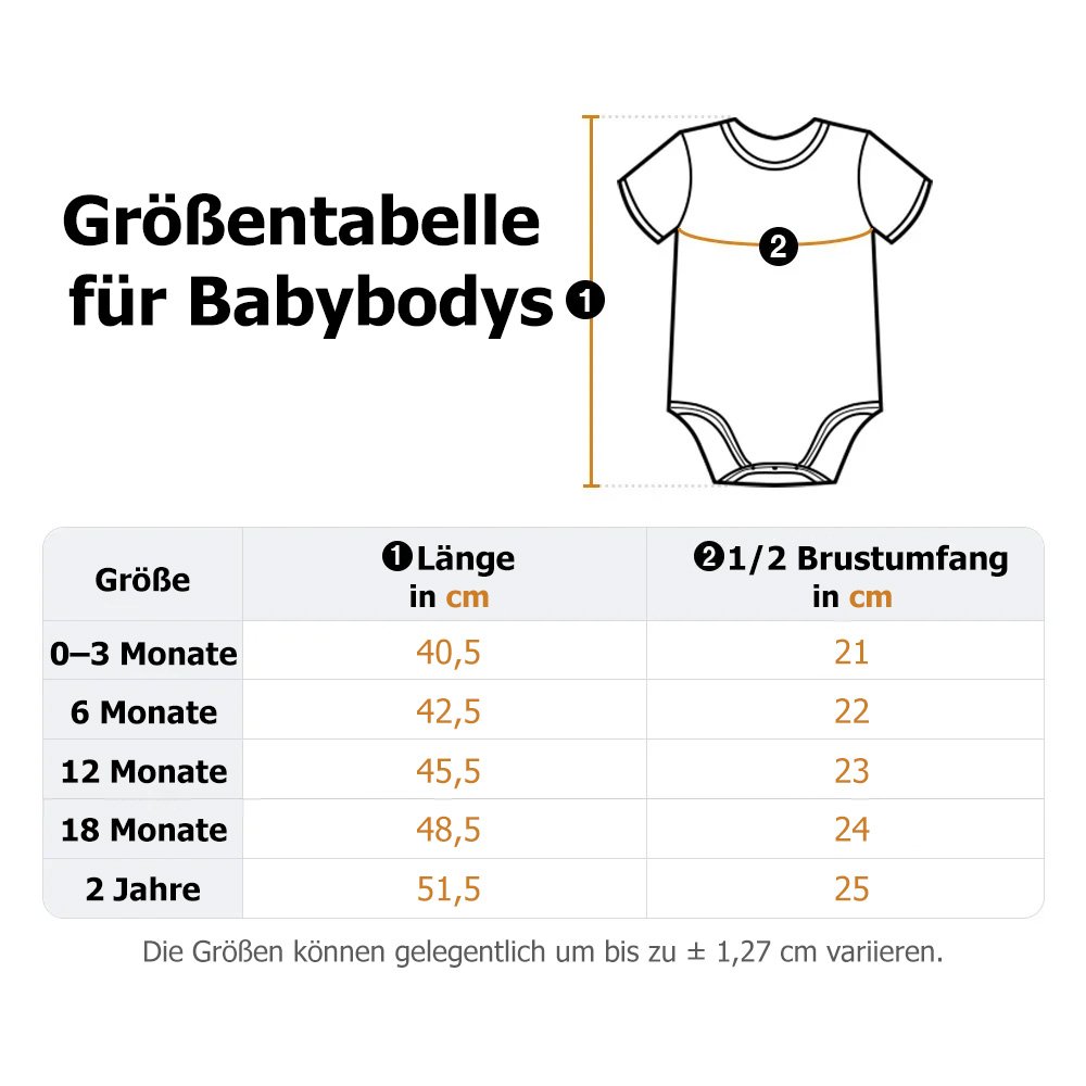 | Größe: | Babybody – 0–3 Monate, 6 Monate, 12 Monate, 18 Monate, 2 Jahre T-Shirt – XXS, XS, S, M, L, XL, 2XL, 3XL, 4XL, 5XL |