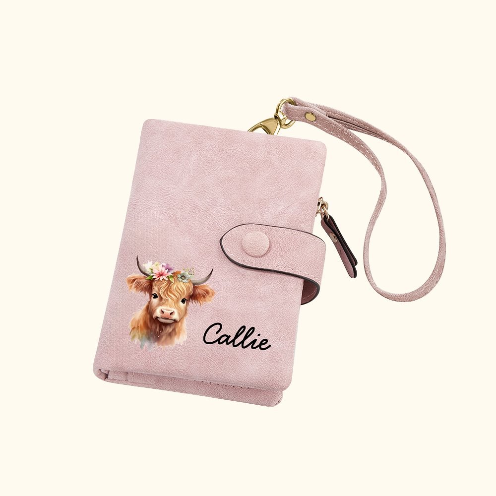 Dieses Portemonnaie enthält das Design einer schottischen Hochlandkuh und Blumen, mit 15 verschiedenen Mustern und Stilen, die andere Bewegungen und Ausdrücke der schottischen Hochlandkuh einfangen und eine Vielzahl von Stilen wie niedlich, elegant, exquisit, kindlich und warm präsentieren. Sie können Ihren Namen auf der Vorderseite hinzufügen, was eine Möglichkeit ist, Ihre Persönlichkeit auszudrücken.