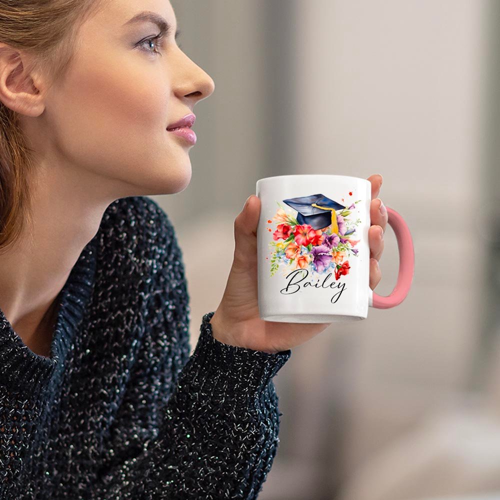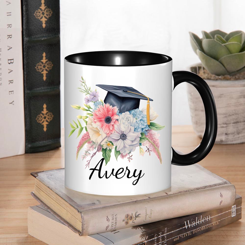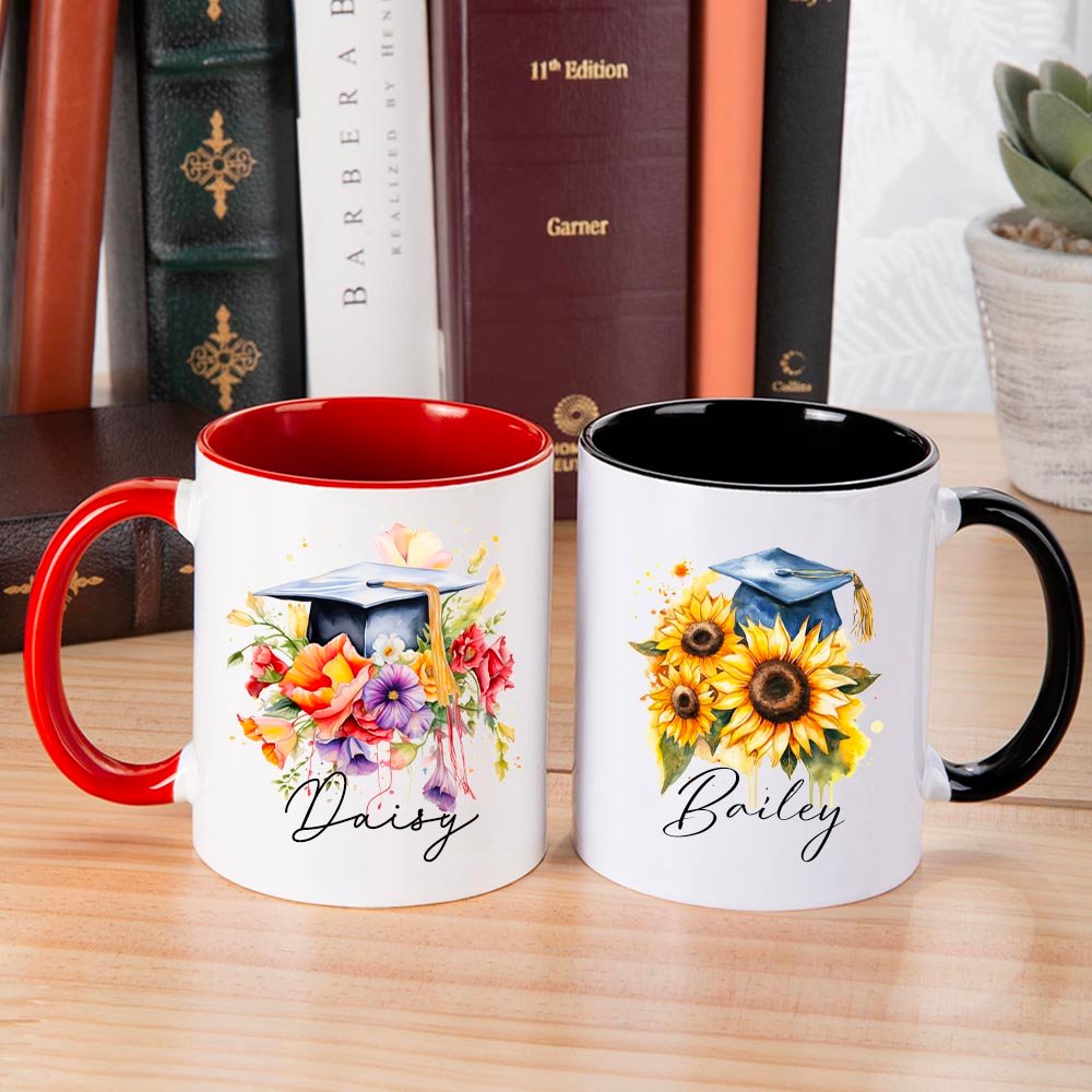 Die Tasse zeigt ein schönes und symbolisches Blumenmotiv, das für Wachstum, Schönheit und Erfolg steht. Die leuchtenden Farben und aufwendigen Details machen sie zu einem optisch ansprechenden und bedeutungsvollen Geschenk für Absolventen. Personalisieren Sie die Tasse mit dem Namen der Absolventen, um ihre Leistung zu feiern und eine bleibende Erinnerung an ihren Abschluss zu schaffen.