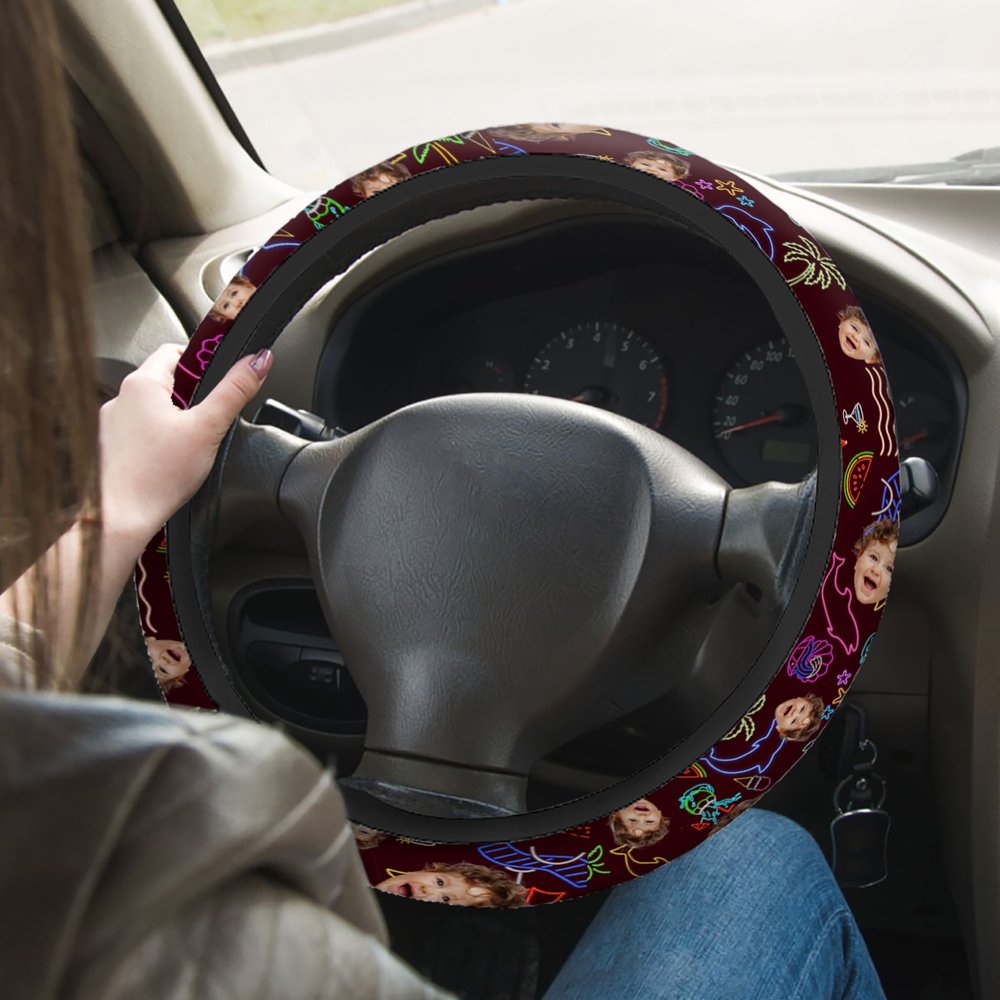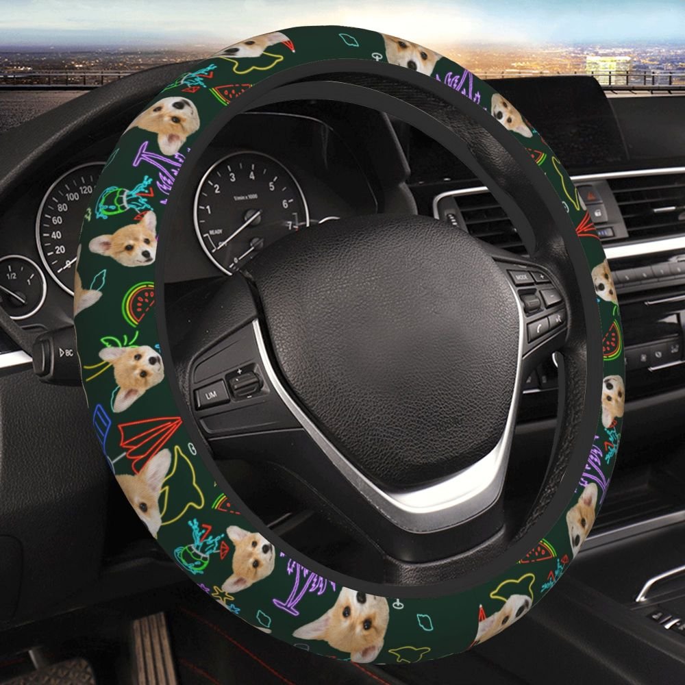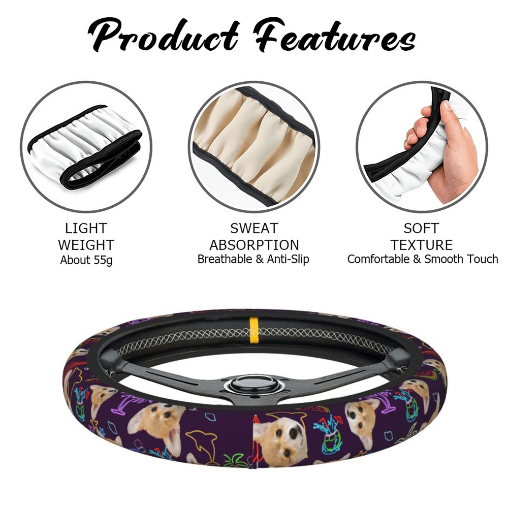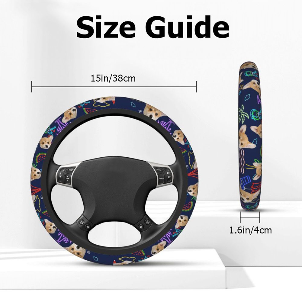 Die Lenkradabdeckung kombiniert Elemente wie fluoreszierende Flamingos und Kokosnussbäume zu einem lebendigen und interessanten visuellen Effekt, in dessen Mittelpunkt niedliche Haustierfotos stehen. Sie können 1 - 3 Haustierfotos hochladen, um Ihre Persönlichkeit zu unterstreichen. Mit 3 verschiedenen Stilen und 5 Hintergrundfarben bietet es eine große Auswahl.