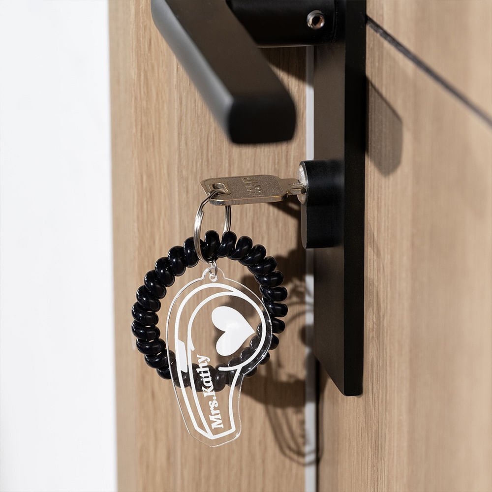 Das pfeifenförmige Design dieses Schlüsselanhängers steht für Sportlichkeit und Führungsqualitäten und ist somit ein perfektes Geschenk für Sportlehrer. Die individuell gestaltbaren Ball- und Herzsymbole spiegeln die tiefe Liebe zum Sport und die Wertschätzung für diejenigen wider, die andere auf dem Spielfeld inspirieren.