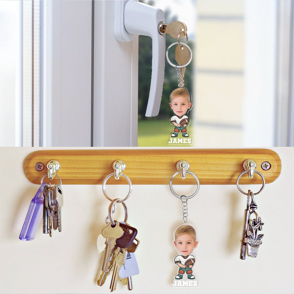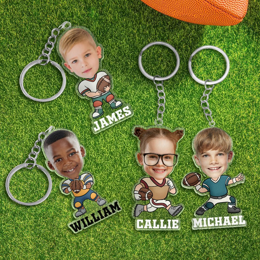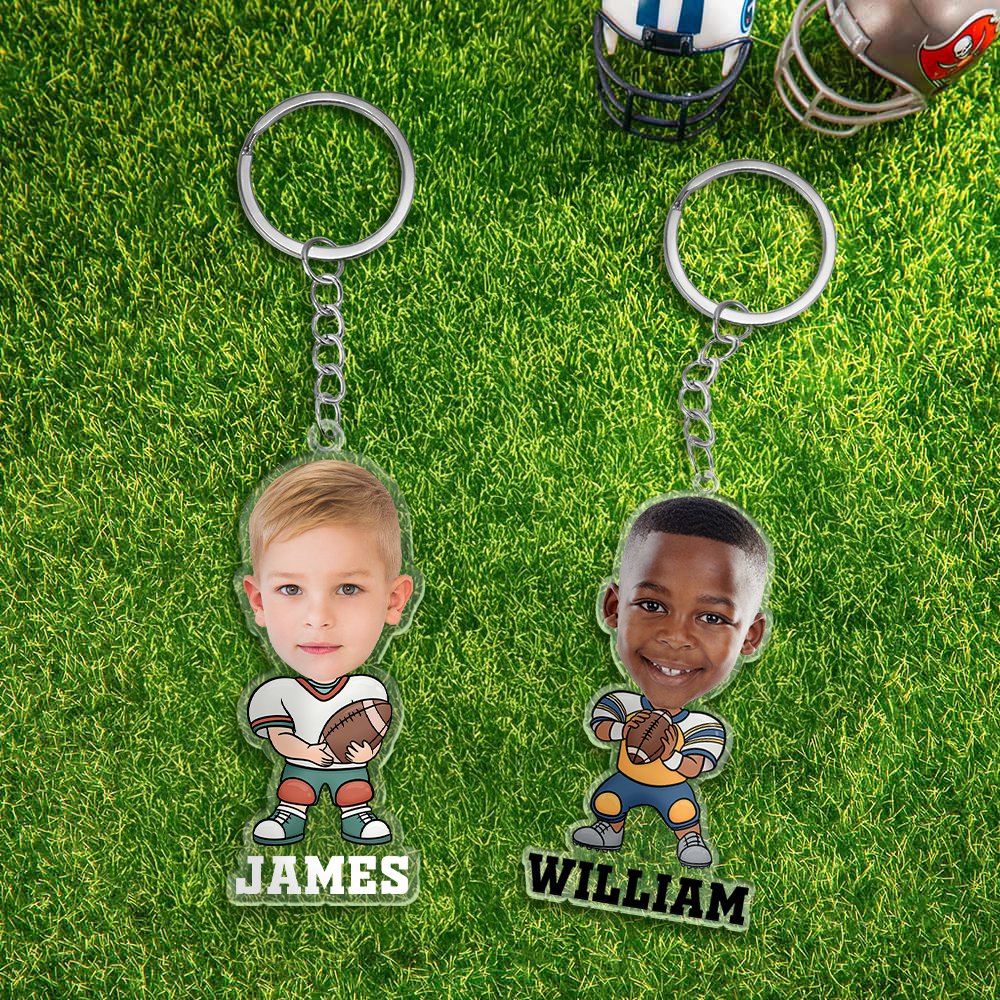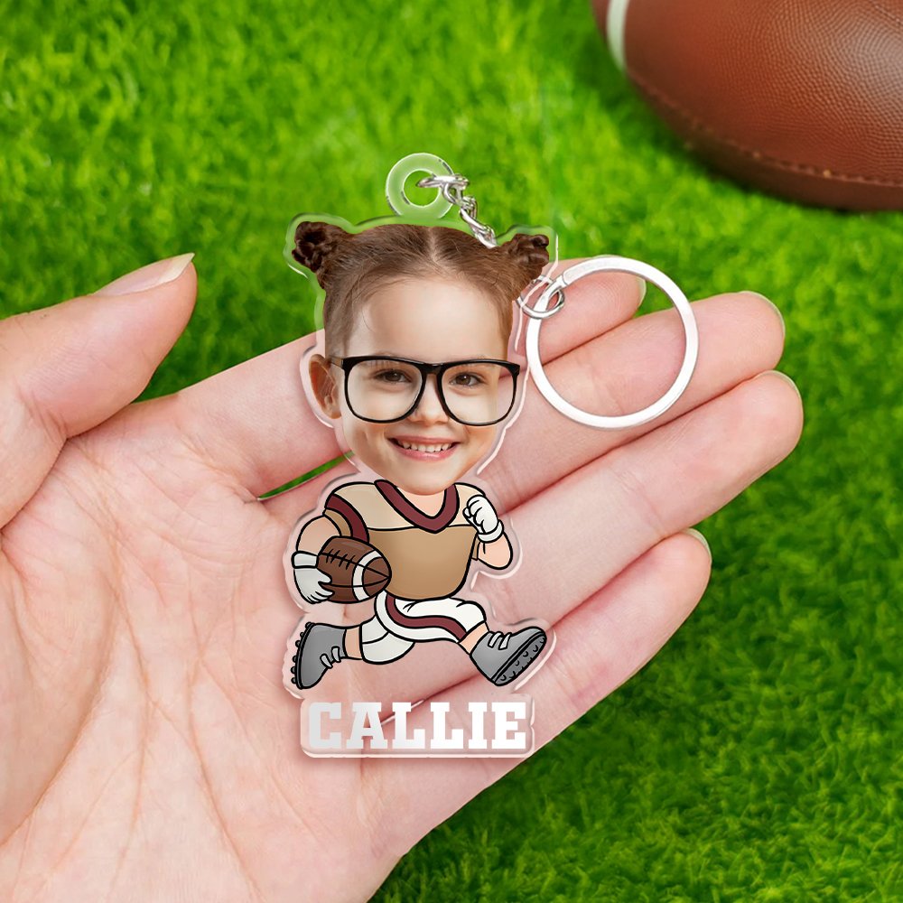 Dieser personalisierte Acryl-Schlüsselanhänger ist ein entzückendes Geschenk, das ein Gesichtsfoto Ihres Kindes mit einem lustigen American Footbal-Action-Design kombiniert. Gestalten Sie ihn mit einem Namen und einer Vielzahl von sportlichen Posen, um ein einzigartiges Accessoire zu schaffen, das Kinder lieben werden.