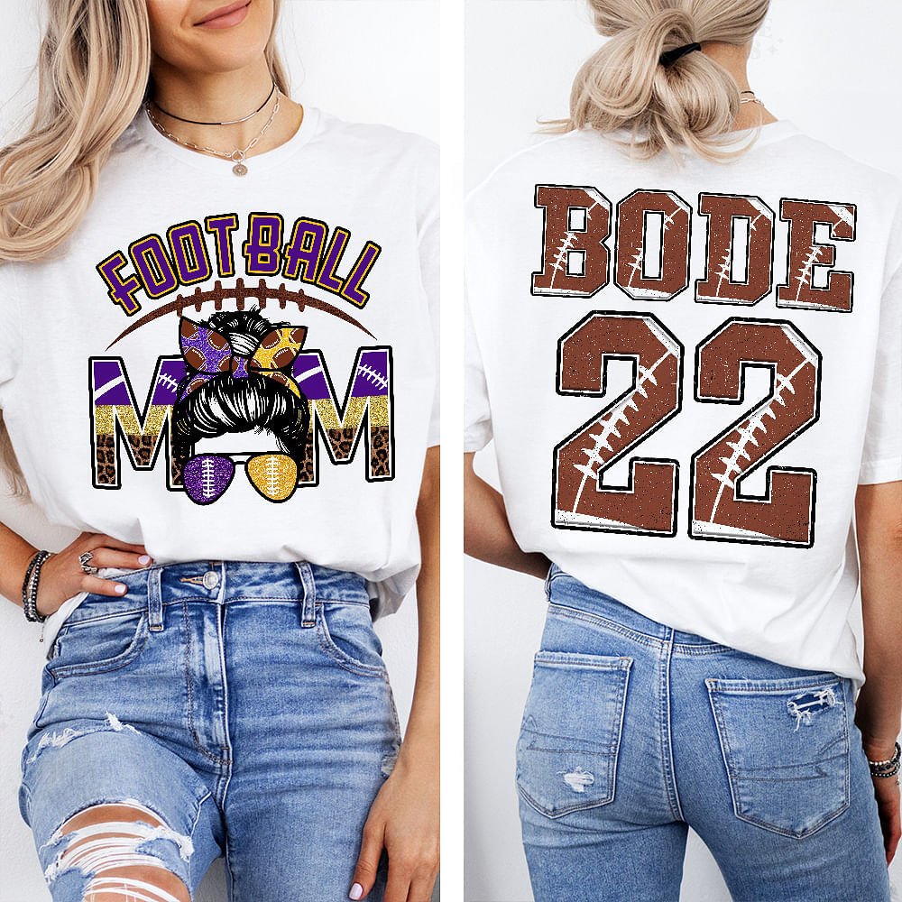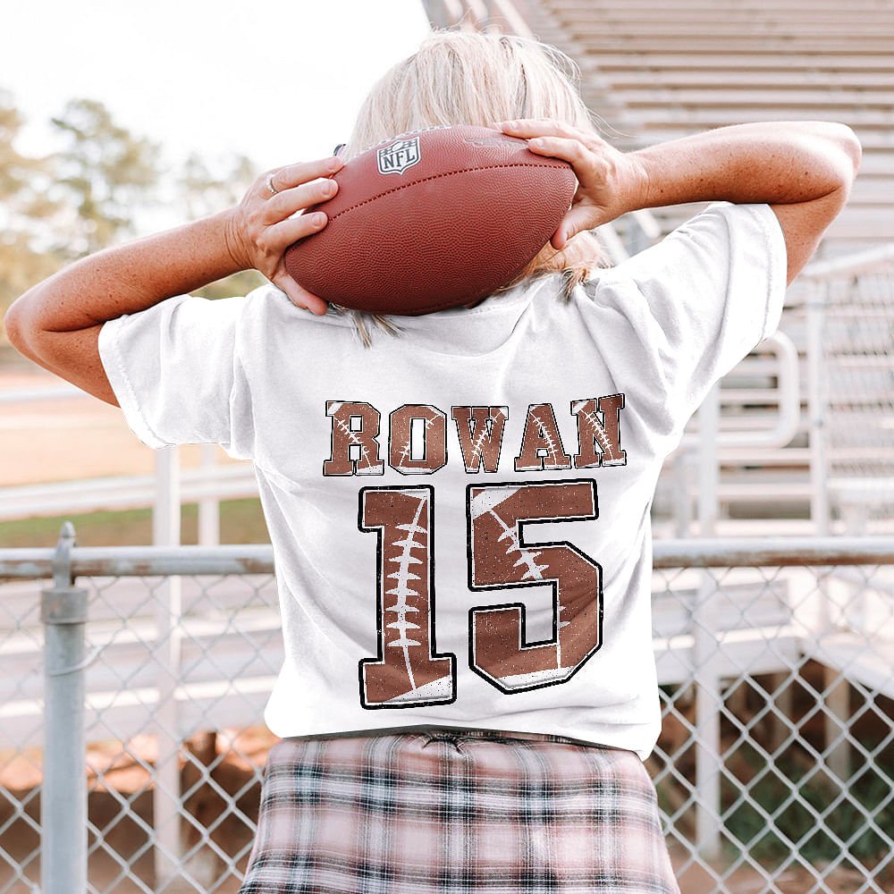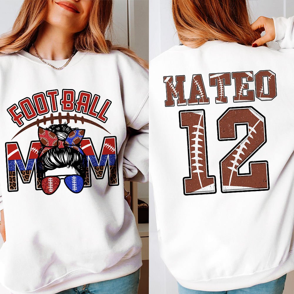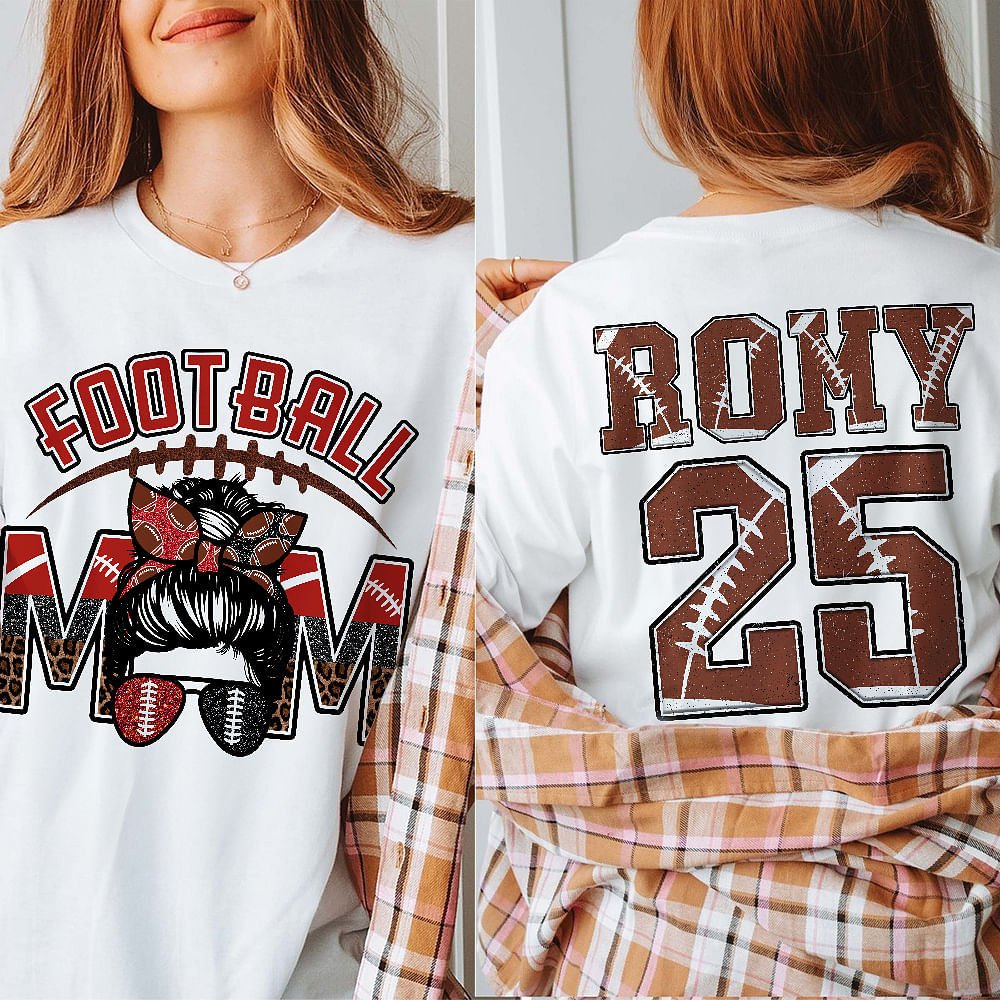 Unser Tuch zeigt einen Damenkopf im Rugby-Stil mit einer Schleife in den Mannschaftsfarben und dem Schriftzug "FOOTBALL MOM" in denselben Farben, der Rugby- und Animal-Print-Elemente enthält, Spaß und Lebendigkeit vermittelt und die Liebe der Frauen zum Rugby zeigt. (PERSONALISIERTE PERFEKTION): Die Rückseite unserer Kleidungsstücke wird mit deinem Namen und deiner Nummer im Rugby-Stil personalisiert, um exklusive Sportbekleidung für dich zu schaffen.
