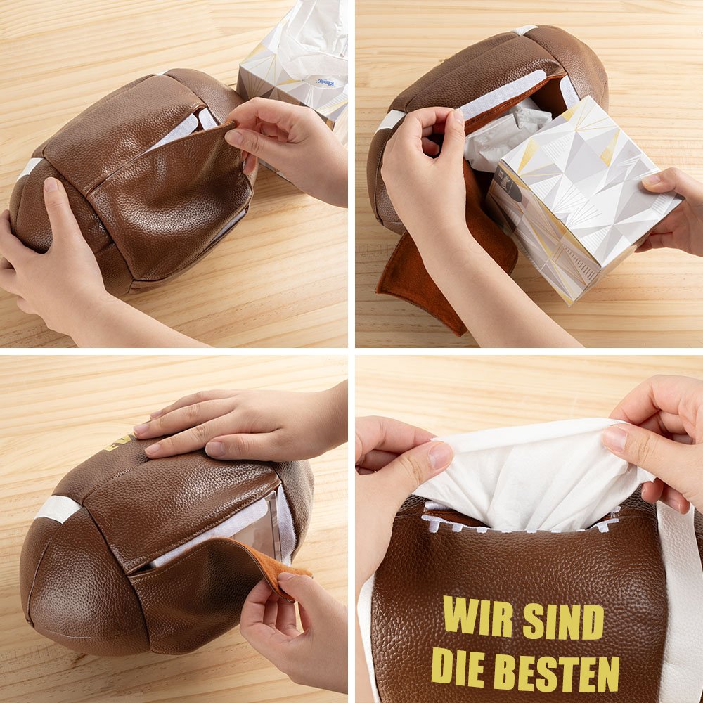 Diese Taschentuch-Box-Abdeckung ist mehr als nur ein dekoratives Element, denn sie fördert die Interaktion am Spieltag. Ob zu Hause beim Spiel oder bei Freunden, das Verteilen von Taschentüchern wird zu einer einnehmenden Aktivität, die an einen American Football-Pass erinnert. Sie eignet sich perfekt als Geschenk für American Football Spieler, Fans oder alle, die ihre Leidenschaft für den Sport in ihrem Zuhause zur Schau stellen möchten.