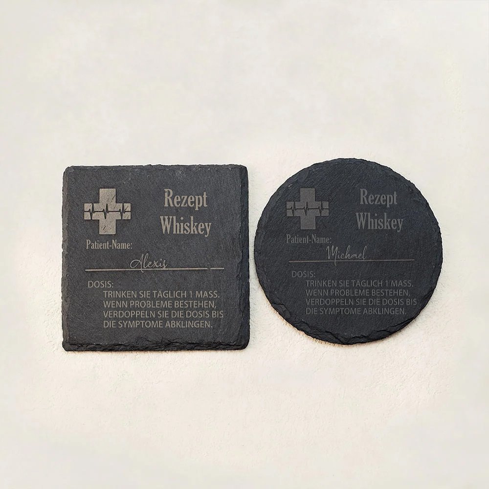 Ergänzen Sie die personalisierten Gläser mit einem eleganten Schieferuntersetzer, der sehr saugfähig, hitzebeständig und leicht zu reinigen ist und Ihre Oberflächen vor Wasserringen oder Hitzeschäden schützt.