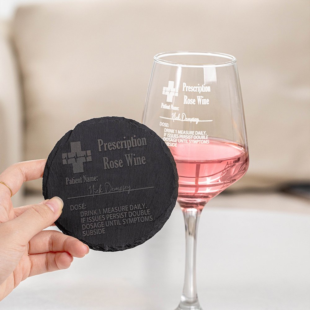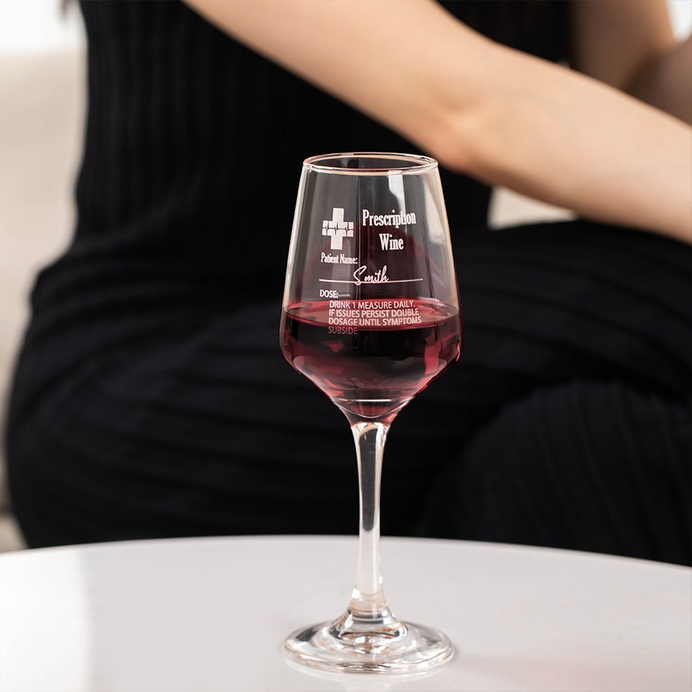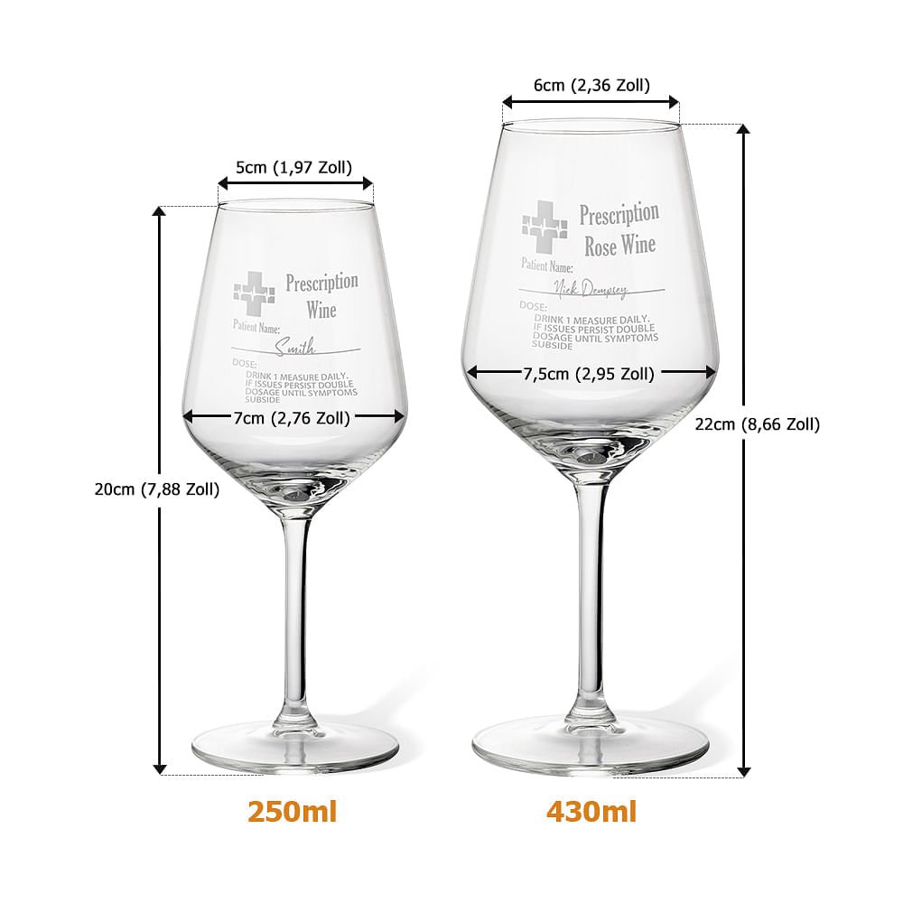 Wählen Sie aus kleinen Weinglas oder großen Weinglas, können Sie sie mit einem eingravierten „Prescription“ Etikett personalisieren, und der Name des Empfängers, die Art der Verschreibung - Alkohol Namen für eine einzigartige und humorvolle Note.