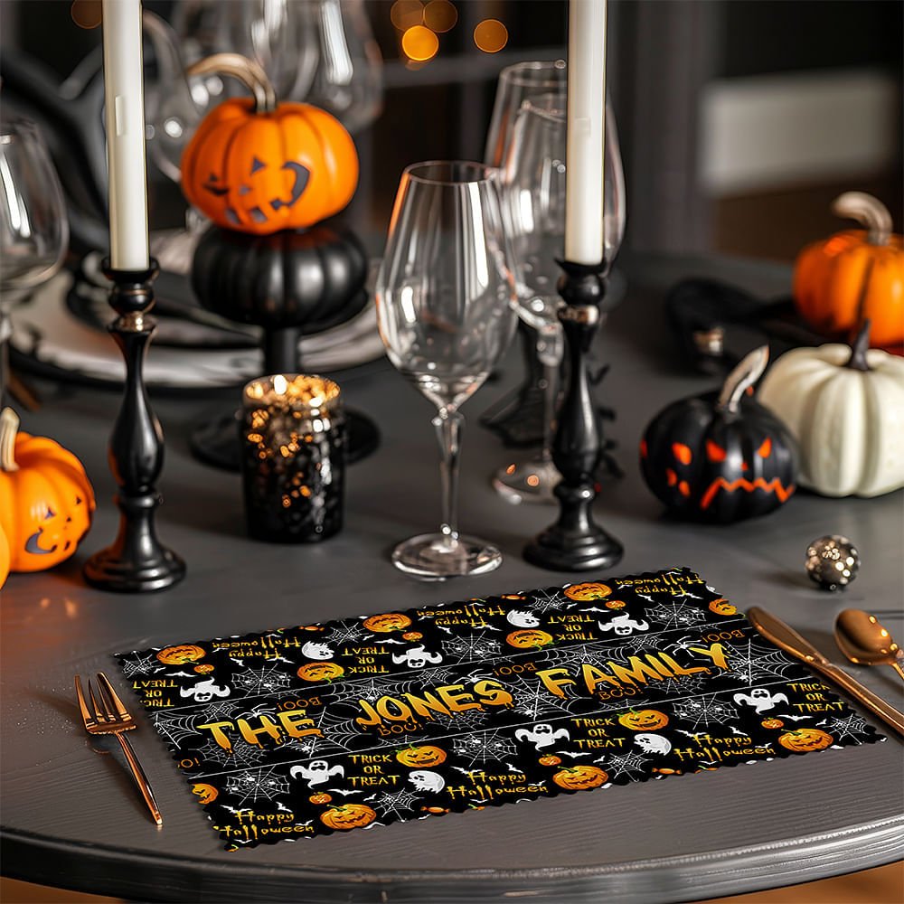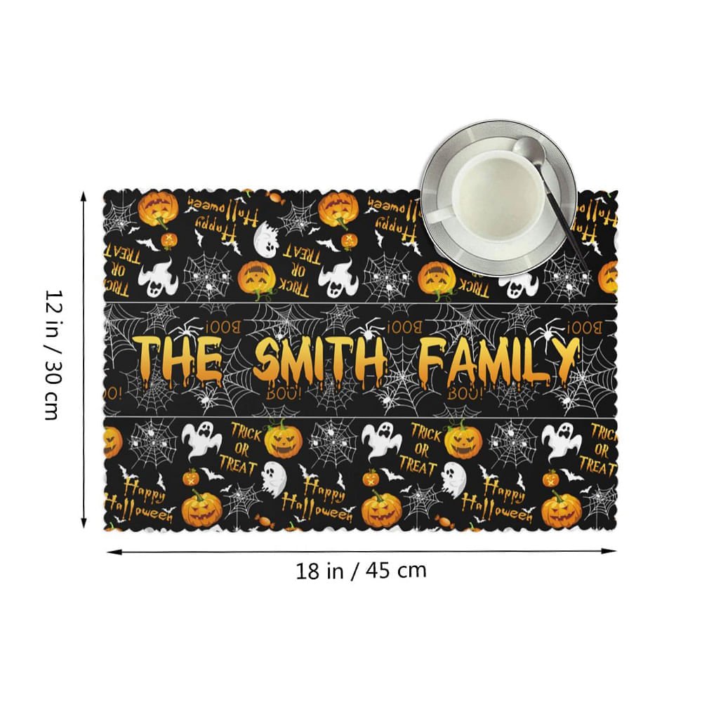 Personalisierte Geist Kürbisse Happy Halloween Satz von 4 12x18 Zoll Tischsets mit Namen Küche Esszimmer Dekor Trick oder behandeln Party Geschenk für
