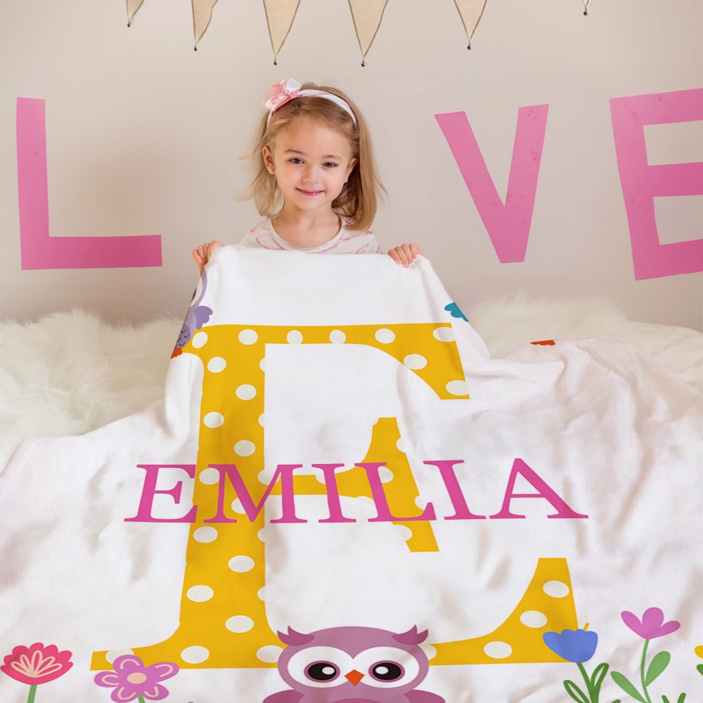 Diese farbenfrohe Decke kann mit dem Namen und den Initialen Ihres Kindes versehen werden, und es gibt fünf verschiedene Stile zur Auswahl, darunter Meerjungfrau, Eule, Fantasie-Einhorn, Giraffe, Ball usw., um eine einzigartige und warme Umgebung für das Wohnzimmer oder das Kinderzimmer zu schaffen. Es ist ein wertvoller Begleiter in der Entwicklung Ihres Kindes, der das Aufräumen zum Vergnügen macht und individuell gestaltet.