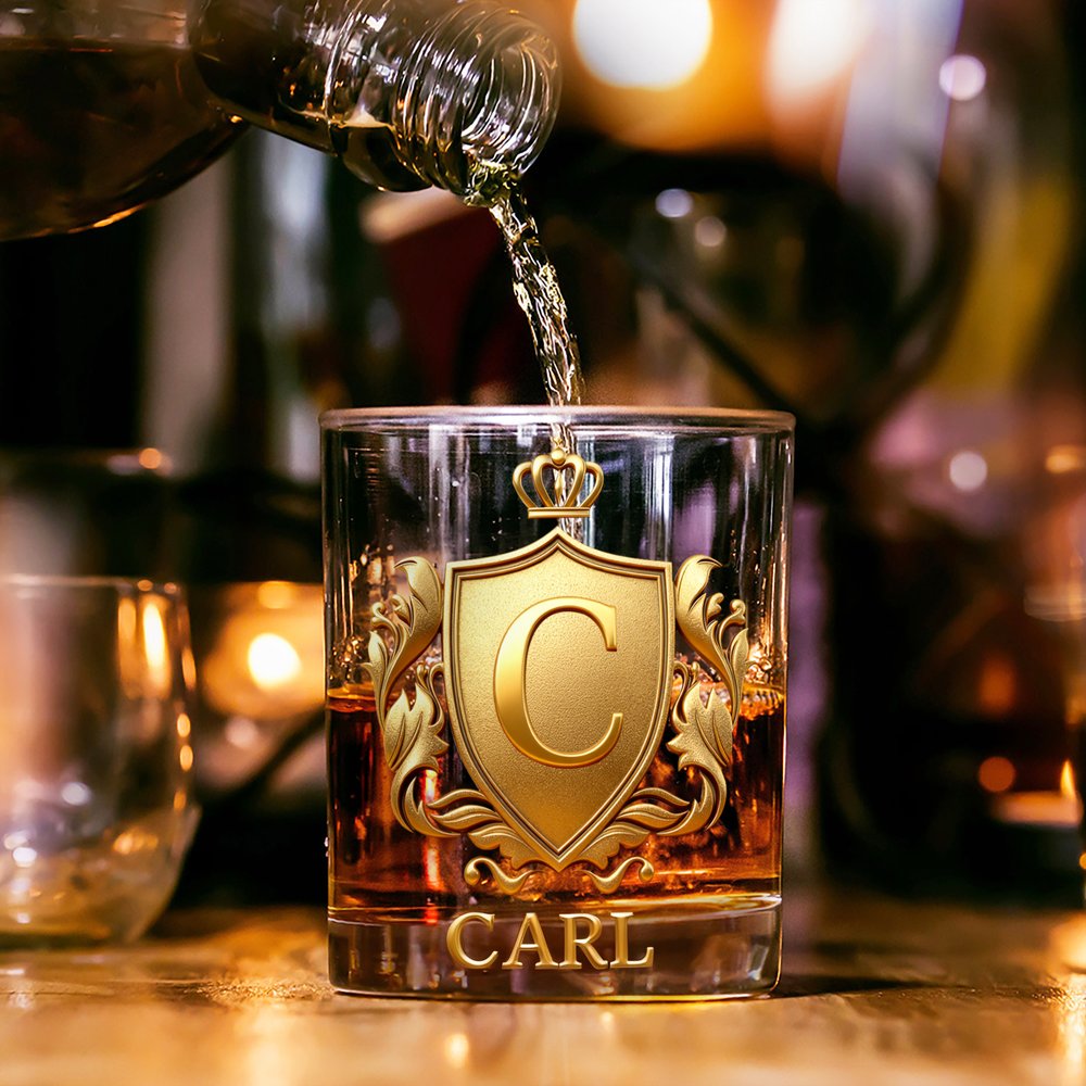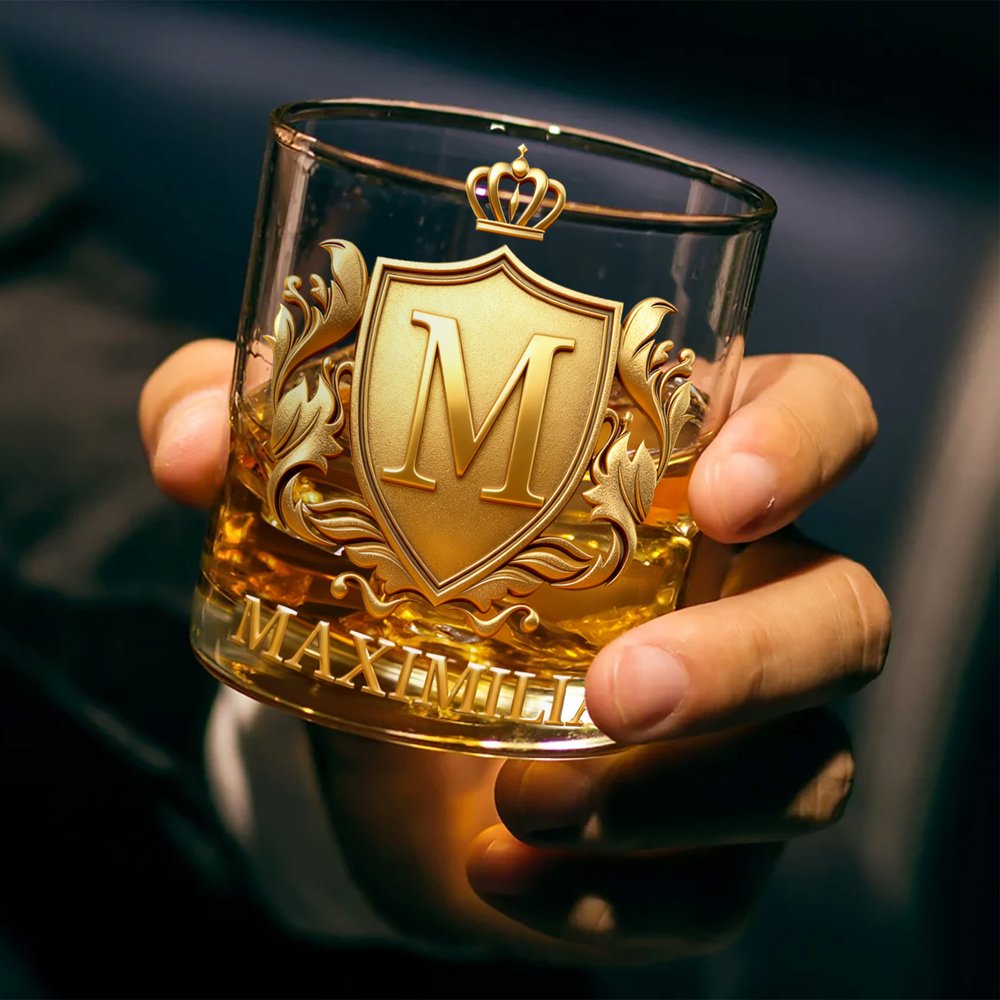 Das Glas überzeugt durch ein auffälliges, goldenes 3D-Wappen, das individuell mit Initialen und Namen personalisiert werden kann. Es ist klar und robust gefertigt und verbindet auf ideale Weise Vintage-Eleganz mit einer persönlichen Note. So wird es zu einem besonderen Begleiter für Ihr Whisky-Verkostungserlebnis und zu einem geschätzten Sammlerstück für Whisky-Enthusiasten. Dieses Glas ist weit mehr als ein Trinkgefäß – es spiegelt Ihre Persönlichkeit und Ihre Wertschätzung für hochwertige Spirituosen wider.