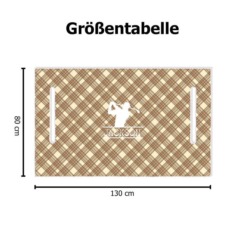 Mit einem klassischen Karomuster als Hintergrund bietet dieser Sitzbezug mehrere Designoptionen, darunter Golfbälle, -schläger und -taschen – spezielle Elemente, die Ihre Leidenschaft für den Sport zum Ausdruck bringen. Mit individuell gestaltbaren Namen und Initialen wird er zu einem einzigartigen Erinnerungsstück. Jeder Sitzbezug ist ein persönliches Style-Statement auf dem Grün und hebt sich mühelos vom Gewöhnlichen ab.