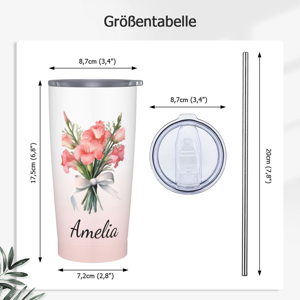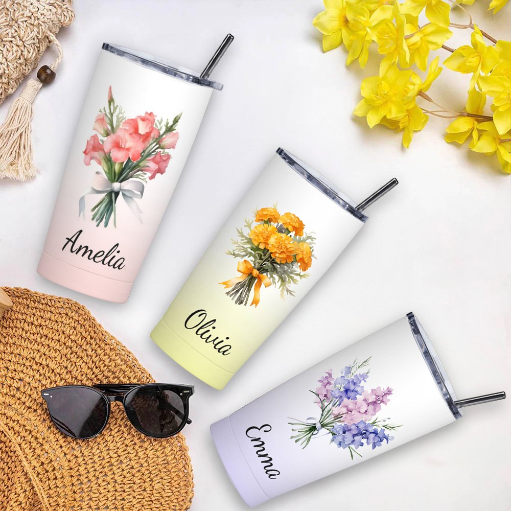 Diese Flasche ist ein durchdachtes und einzigartiges Zubehör, das die Schönheit der Geburtsblumen mit praktischer Nutzung verbindet. Sie können aus 8 Farbverläufen wählen, um den Stil des Empfängers zu treffen, und Sie können die Geburtsblume und den Namen des Empfängers hinzufügen, um es wirklich einzigartig zu machen.