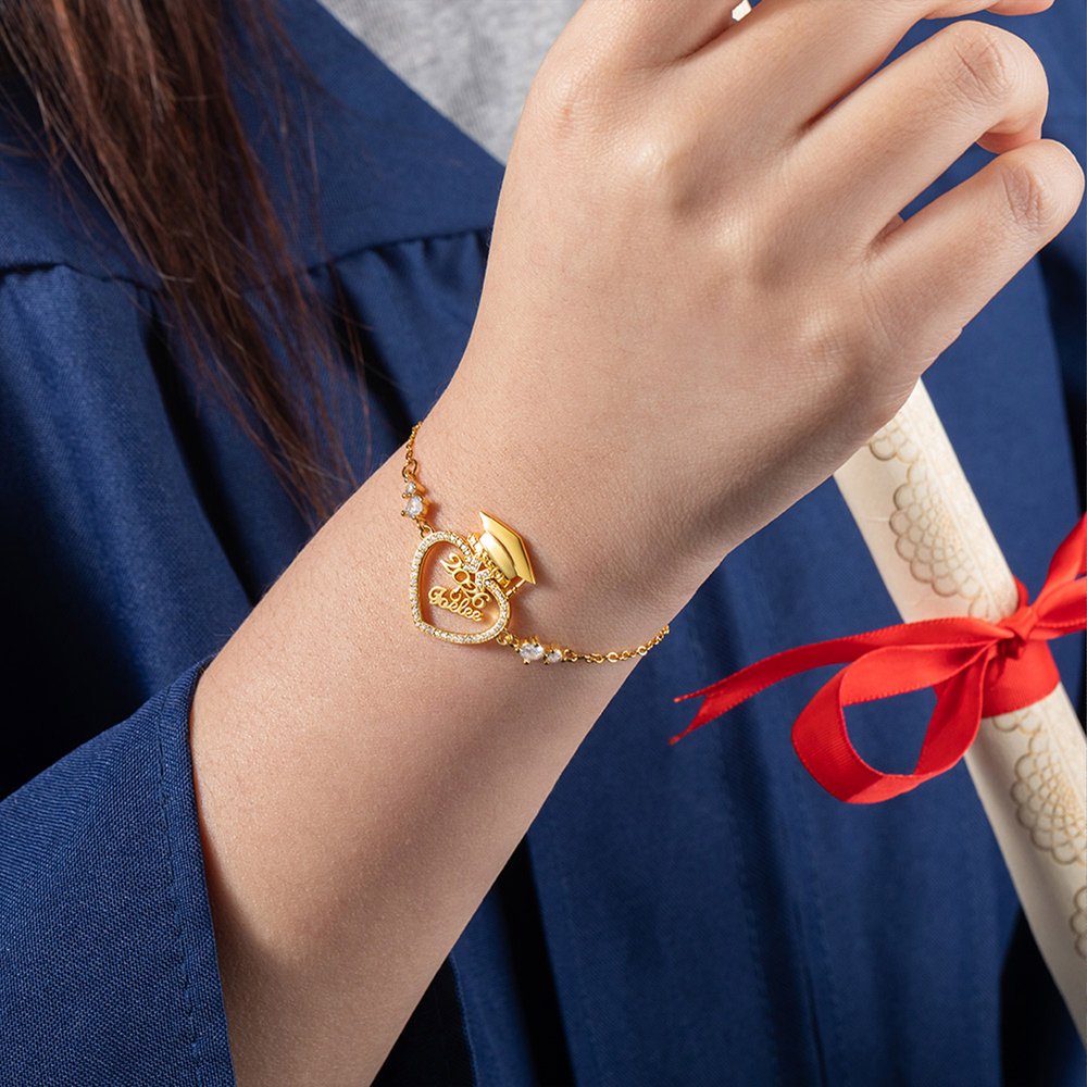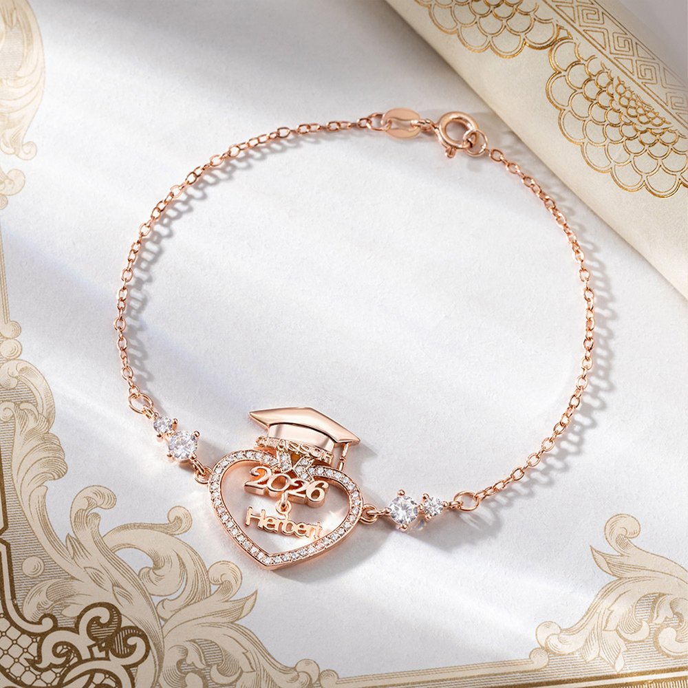 Dieses Armband kombiniert Abschlusskappen und herzförmige Zirkonelemente, was bedeutet, dass die Absolventen im Begriff sind, sich auf eine neue Lebensreise zu begeben, mit vollem Segen und Erwartungen. Als Symbol für akademische Studien steht die Abschlusskappe für die Ehre und den Stolz der Studenten, die ihr Studium abgeschlossen haben; der herzförmige Zirkon symbolisiert Liebe und Wärme. Ich hoffe, dass jeder Absolvent in Zukunft Liebe und Fürsorge spüren kann.