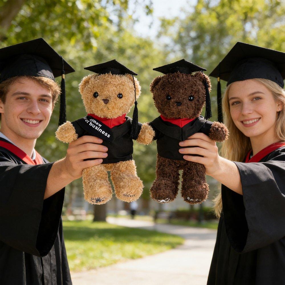 Wählen Sie aus vier verschiedenen Teddybär-Stilen, die den individuellen Vorlieben entsprechen. Ob ein Bär mit individuell gestalteten Füßen, einer angepassten Brust, einem Absolventenhut oder einer Kombination aus allen drei – es gibt einen Stil, der zu jedem Absolventen passt. Der Name des Absolventen kann elegant auf den Füßen des Teddybären oder an anderen sichtbaren Stellen gedruckt werden, um ihn zu einem einzigartigen Andenken zu machen.