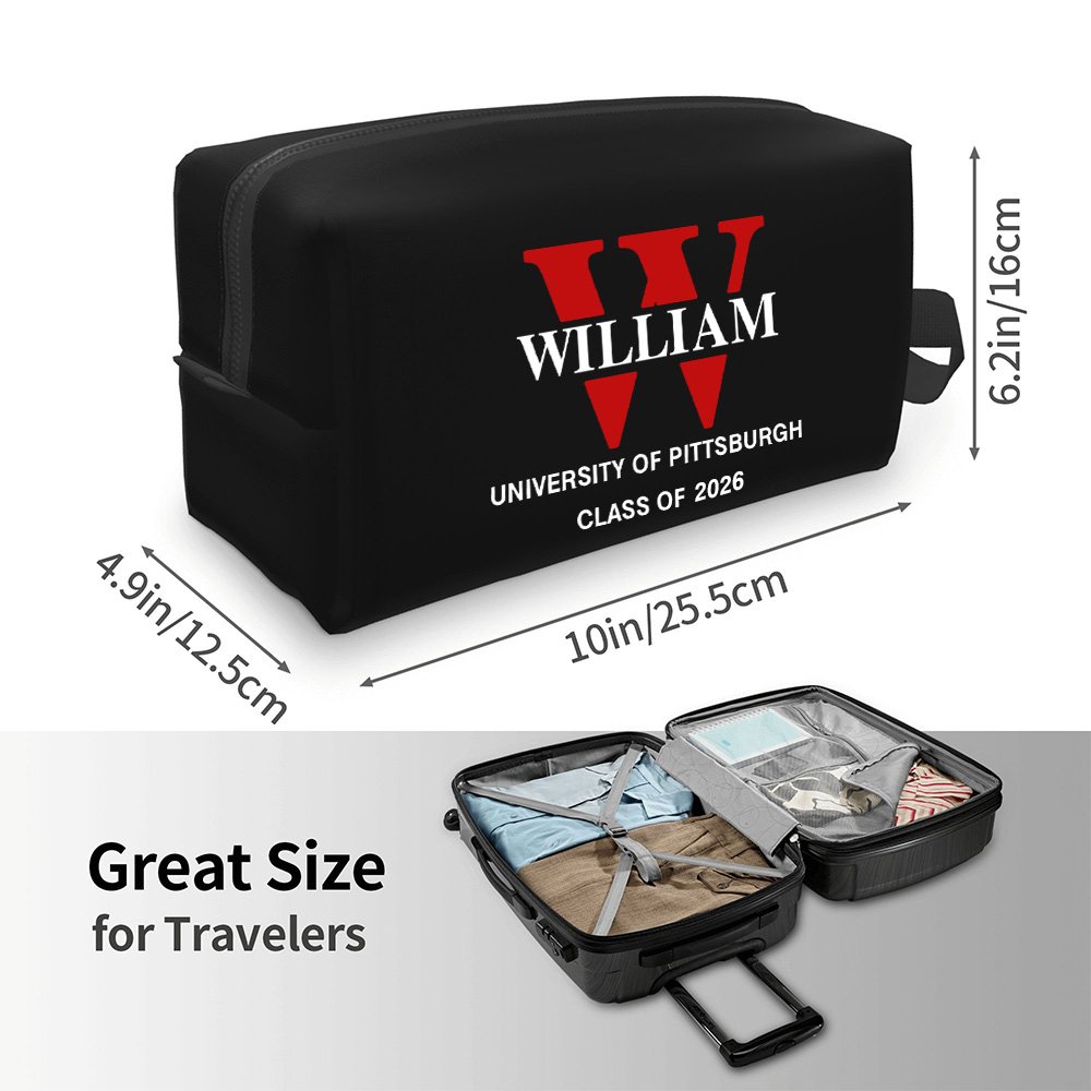 Dieser Kulturbeutel mit Abschlussmotiv zeichnet sich durch seine einzigartigen Personalisierungsoptionen aus, darunter die Möglichkeit, den Namen, die Initialen und den Text individuell zu gestalten. Außerdem können Sie Ihre bevorzugte Farbe für die Initialen auswählen. Dies macht ihn zu einem bedeutungsvollen Andenken für jeden Absolventen und zu einem äußerst praktischen Geschenk.