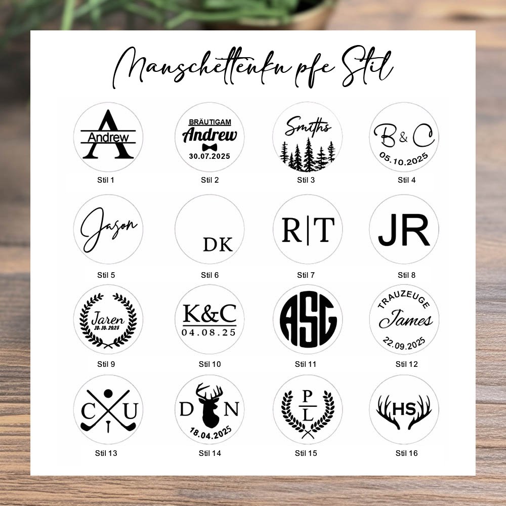 Ob Manschettenknöpfe, Anzug Klammern oder Holzboxen, wir bieten Ihnen ein personalisiertes und individuelles Design, in das Sie Ihren eigenen Namen oder den der anderen Person, ein Datum oder eine besondere Nachricht eingravieren lassen können. So wird es zu einem exklusiven Accessoire, das auch im Laufe der Zeit eine wertvolle Erinnerung bleiben wird.