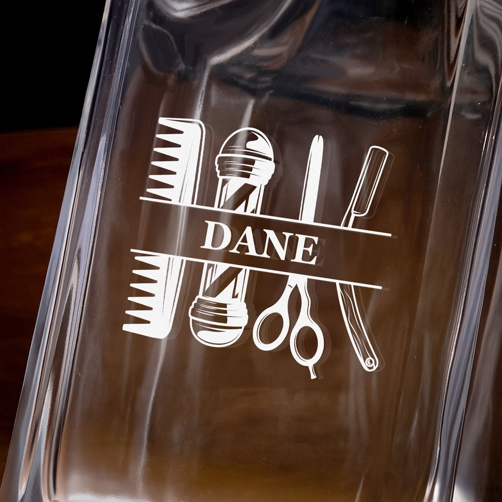 Die hochwertige Glaskaraffe und das Holzkästchen mit dem Kernthema Friseur werden mit individuellen Details graviert. Individuell gestaltbare Namen verstärken das Gefühl der Exklusivität und verwandeln das Set in mehr als nur ein Trinkgefäß; es wird zu einem persönlichen Sammlerstück, das sowohl ästhetisch ansprechend als auch einprägsam ist
