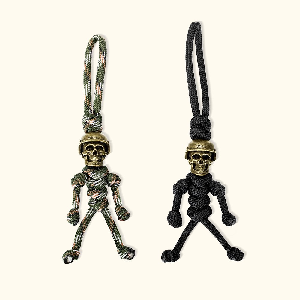 Durch die Hand Weben, die robuste Paracord macht den Körperteil, und der Schädel zusammen macht diese super coolen Schlüsselanhänger, und das Besondere ist, dass wir benutzerdefinierte Text auf dem Helm zu helfen, erstellen Sie einen einzigartigen Schlüsselanhänger zu unterstützen. Es ist sicher, das Gespräch der Stadt zu sein!