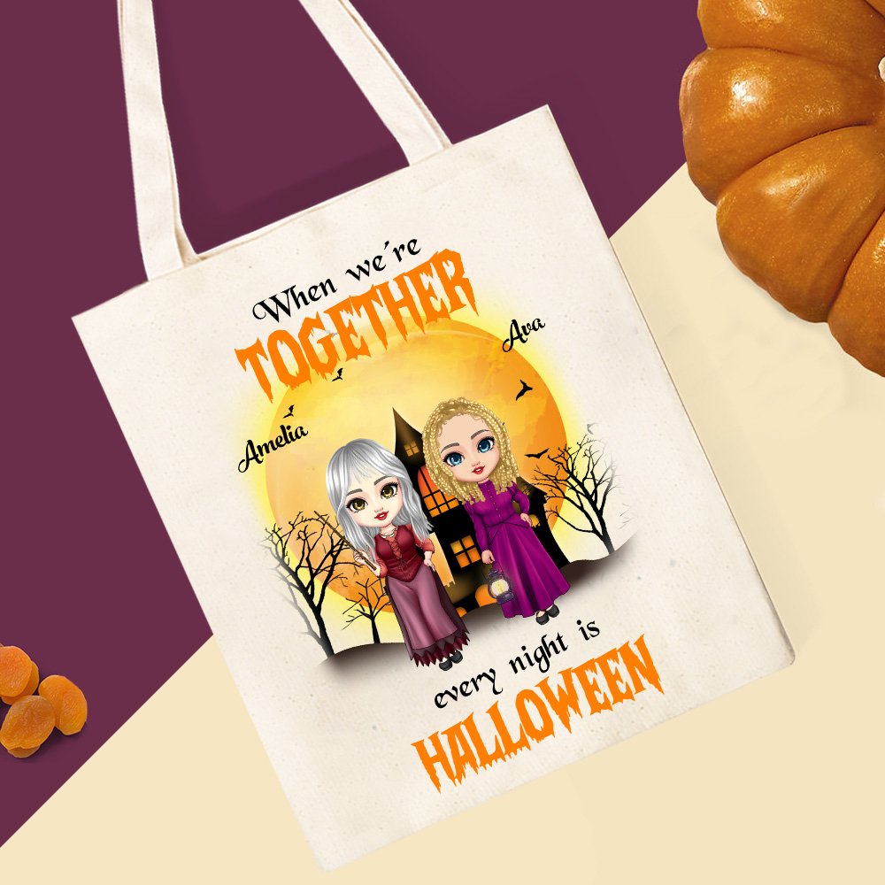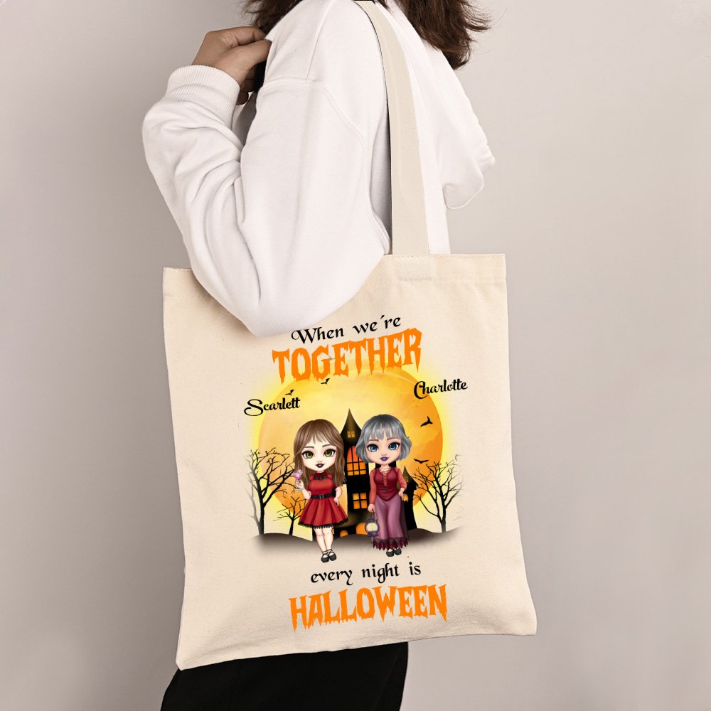 Diese Canvas-Tasche ist das beste Geschenk für Besties, wenn wir zusammen sind, jede Nacht ist Halloween, bedruckt mit dem Hintergrund, den Sie gewünscht haben, ausgestattet mit Halloween-bezogenen Mustern, die auf sie gedruckt sind, sehr viel im Einklang mit dem Thema Halloween, können Sie es in Ihrem täglichen Leben verwenden oder teilen Sie es mit Ihren Freunden. Diese lustige Tasche ist die perfekte Wahl für Halloween-Partys. (HOCHWERTIGES MATERIAL): Diese Canvas-Taschen sind aus Canvas, das weich, robust und langlebig mit guter Tragfähigkeit ist, mit zwei robusten, Stoff Griffe für einfaches Tragen und können Sie für eine lange Zeit dienen.