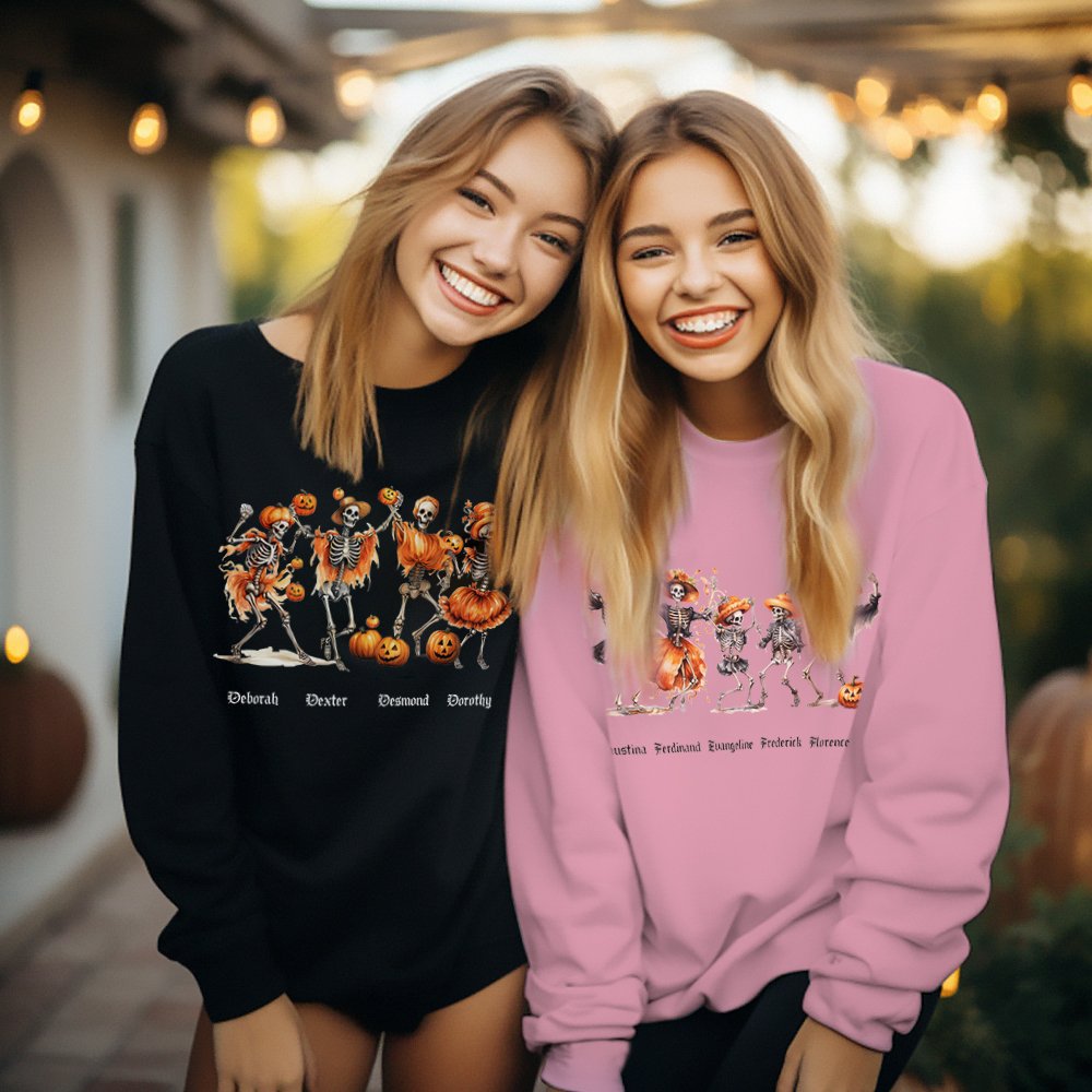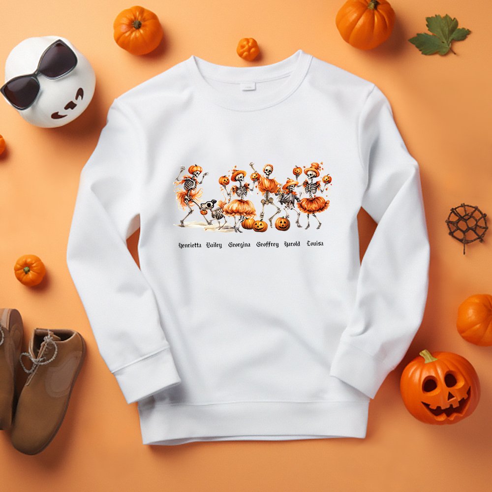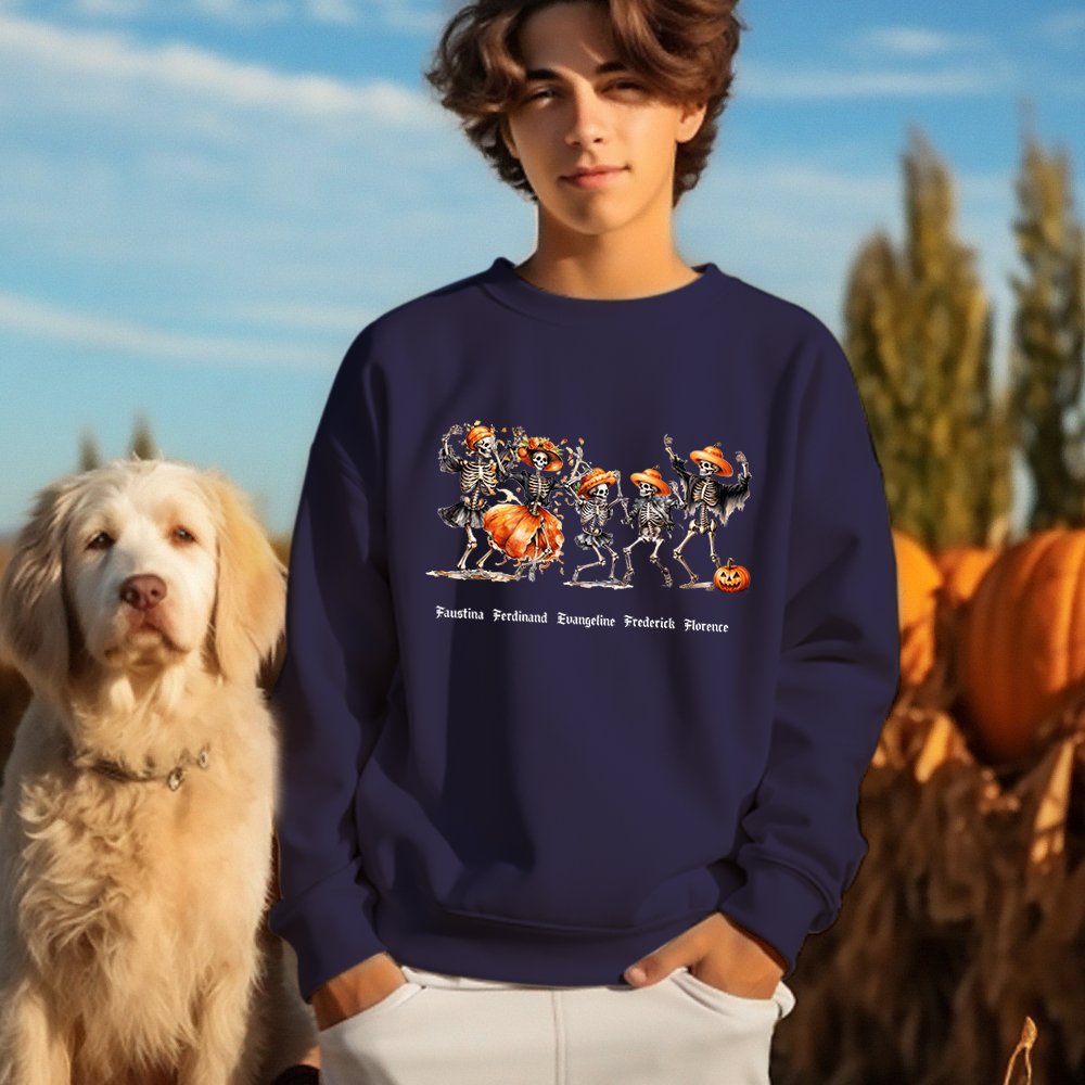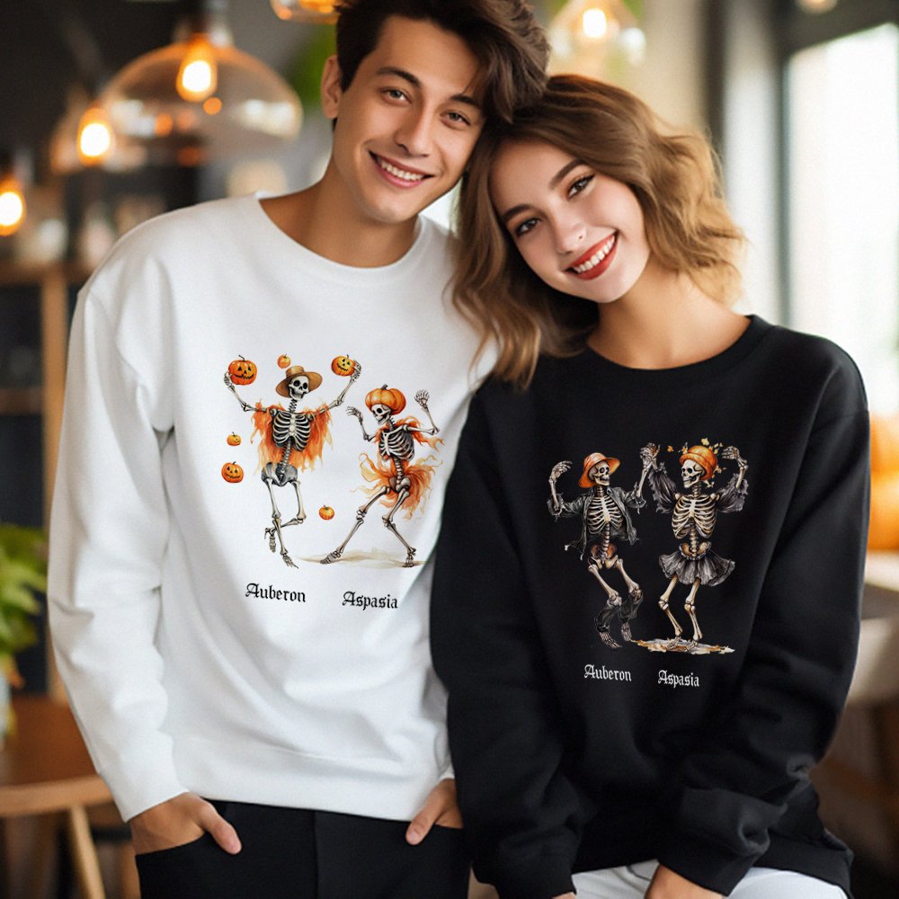 Dieses Sweatshirt ist nicht nur ein ideales Halloween-Kleidungsstück, sondern kann auch im Alltag als Freizeitkleidung getragen werden. Sein stilvolles Design mit tanzenden Skeletten und Kürbissen verleiht jedem Outfit einen Hauch von Spaß und Festlichkeit. (DURCHDACHTES GESCHENK ZU HALLOWEEN): Egal, ob Sie ein Halloween-Geschenk für Ihre Lieben suchen oder Ihre Freunde mit einem unvergesslichen Geschenk überraschen wollen, unser personalisiertes Sweatshirt ist die perfekte Wahl. Seine Anpassungsmöglichkeiten und die hochwertige Verarbeitung machen es zu einem durchdachten und einzigartigen Geschenk, an das man sich noch jahrelang erinnern wird.