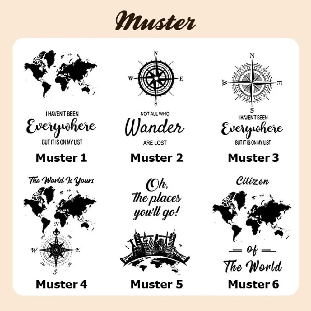 Die Reisepasshülle zeichnet sich durch ihr beliebtes und auffälliges Design aus. Die Kombination der Elemente Weltkarte und Kompass ist eine Referenz an den Abenteuergeist und verleiht ihm eine stilvolle Note. Der Einband ist handgenäht und aus robustem gewachstem Garn, was auf Handwerkskunst und Langlebigkeit hinweist. So ist der Einband für die Strapazen des Reisens geeignet.